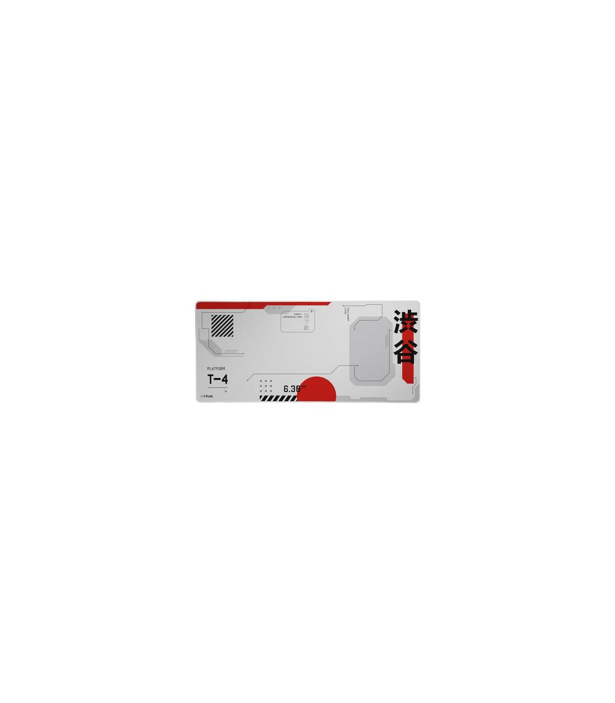 Trust GXT 759 XXL. Ancho: 900 mm, Profundidad: 400 mm. Color del producto: Negro, Gris, Rojo, Blanco, Coloración de superficie: Imagen, Material: Tereftalato de polietileno (PET), Bordes rematados, Base antiderrapante, Alfombrilla de ratón para juegos