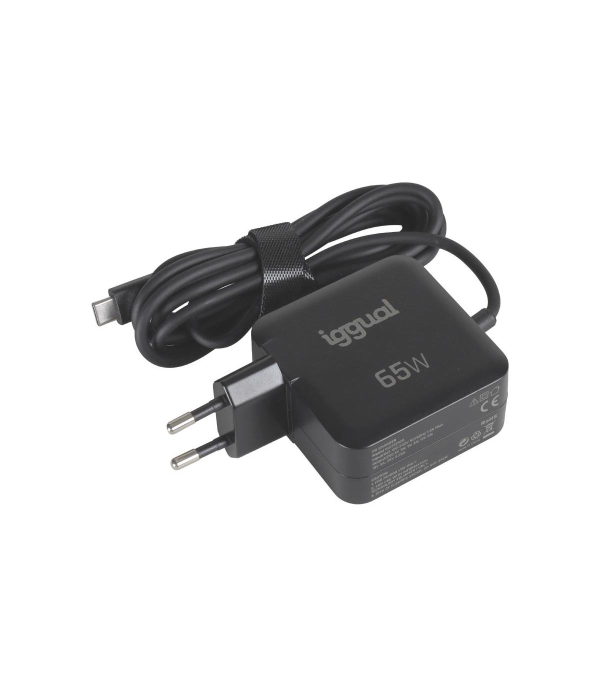 iggual PD 65W. Tipo de cargador: Interior, Alimentación: Corriente alterna, Compatibilidad del cargador: Universal. Voltaje de entrada: 100 - 240 V, Voltaje de salida máximo: 15 V, Corriente de salida de adaptador AC: 3 A. Carga rápida, Funciones de protección de poder: Sobreintensidad, Sobrevoltaje, Sobrecalentamiento, Cortocircuito. Longitud de cable: 1,8 m, Color del producto: Negro