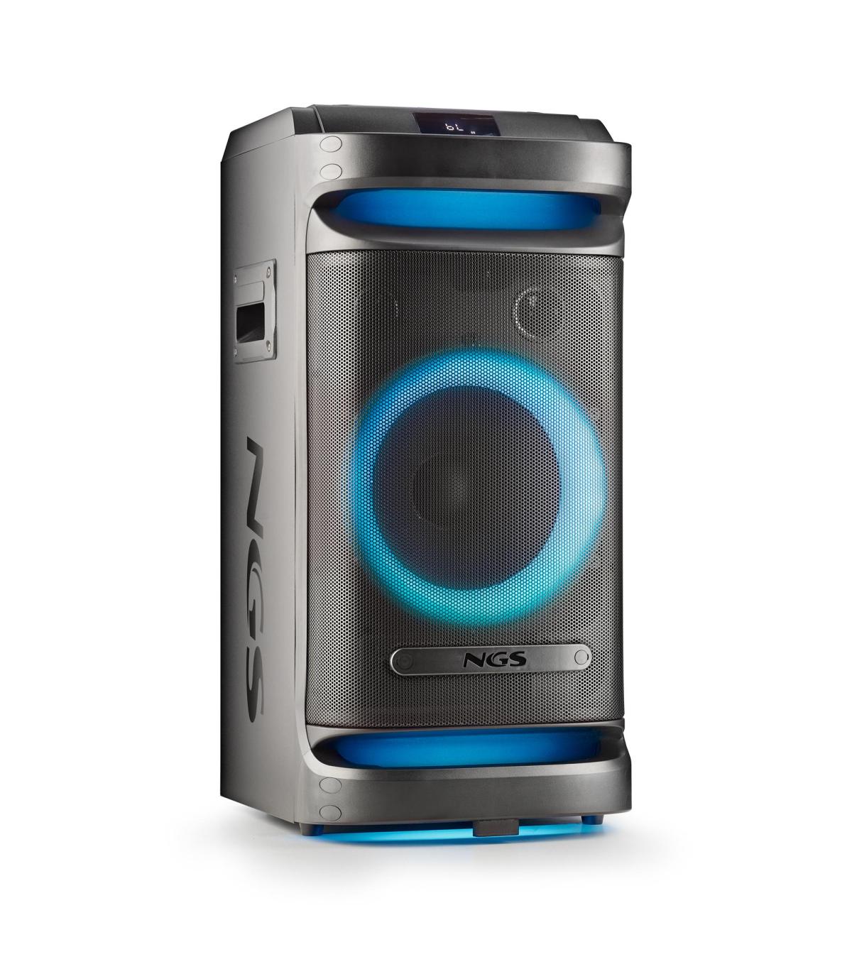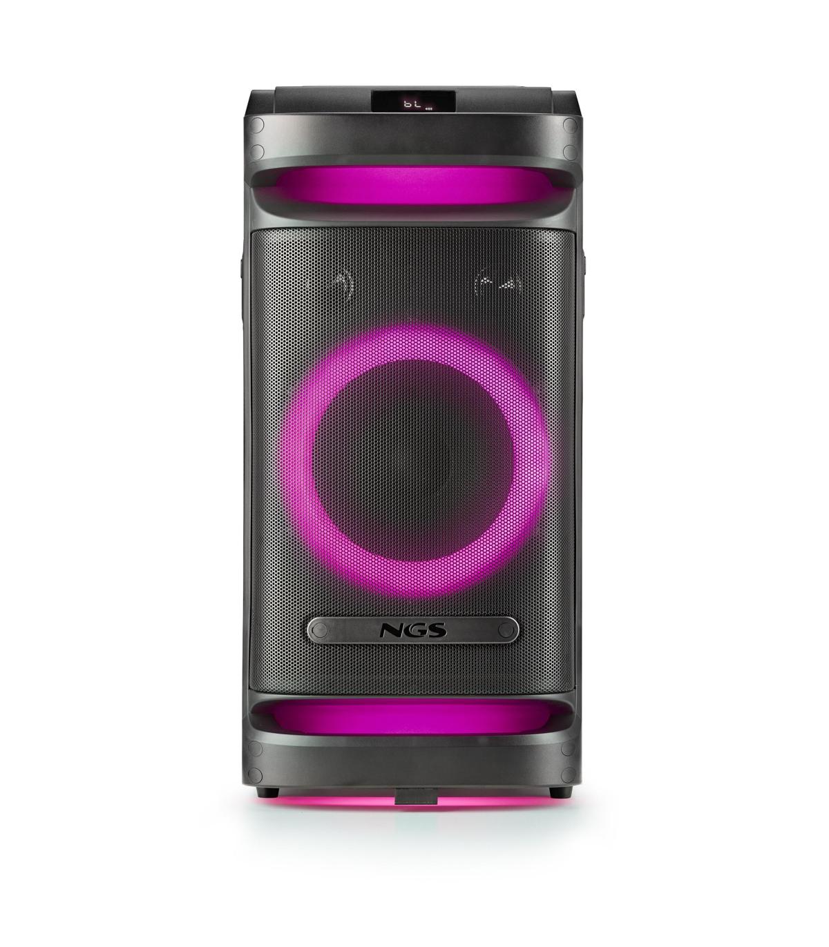 NGS WILD SPACE 1. Diámetro del tweeter (imperial): 2,54 cm (1"), Diámetro del woofer (imperial): 25,4 cm (10"). Potencia estimada RMS: 180 W, Salida de pico de potencia musical (PMPO): 900 W. Tecnología de conectividad: Inalámbrico, alcance Bluetooth: 10 m. Tipo de producto: Altavoz portátil estéreo, Color del producto: Negro, Diseño de producto: Cilindro. Uso recomendado: Universal, Formatos de audio soportados: MP3, WAV, WMA