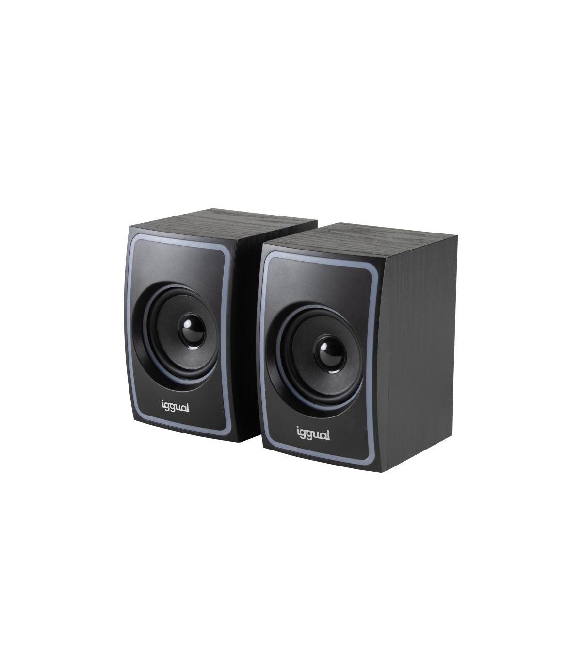 Los altavoces 2.0 iggual de 10W ofrecen una solución sencilla para mejorar el audio en escritorios y despachos. Su sistema estéreo proporciona un sonido claro y equilibrado, ideal para voz y multimedia, sin ocupar apenas espacio.