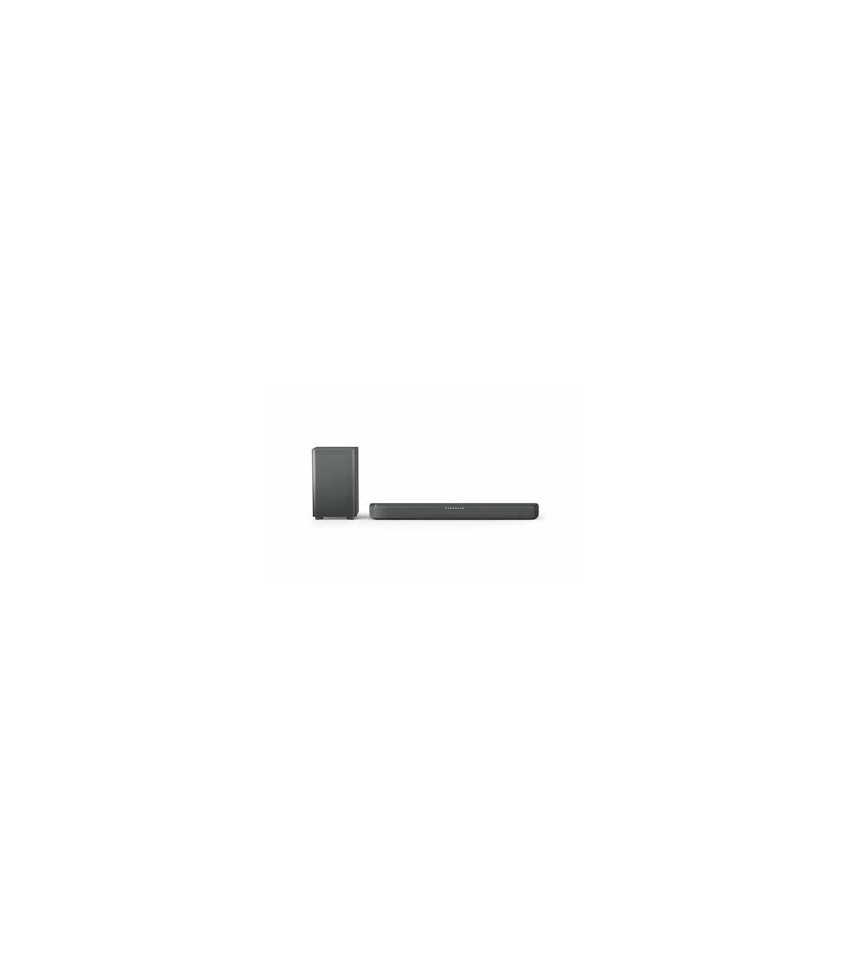 Philips 5300 series TAB5309/10. Canales de salida de audio: 2.1 canales, Potencia estimada RMS: 120 W, Decodificadores incorporados: DTS 5.1, DTS Virtual:X, Dolby Digital, Dolby Digital Plus. Potencia de la barra de sonido del altavoz RMS: 120 W, Obstrucción: 8 Ω, THD, distorción armónica total: 10%. Tipo de subwoofer: Altavoz de subgraves (subwoofer) activo, Conectividad del altavoz de subgraves (subwoofer): Inalámbrico, Rango de frecuencias de subwoofer: 40 - 150 Hz. Color del producto: Gris, Nombre del color: Dark gray, Formatos de audio soportados: FLAC, LPCM, MP3, WAV. Tecnología de conectividad: Inalámbrico y alámbrico