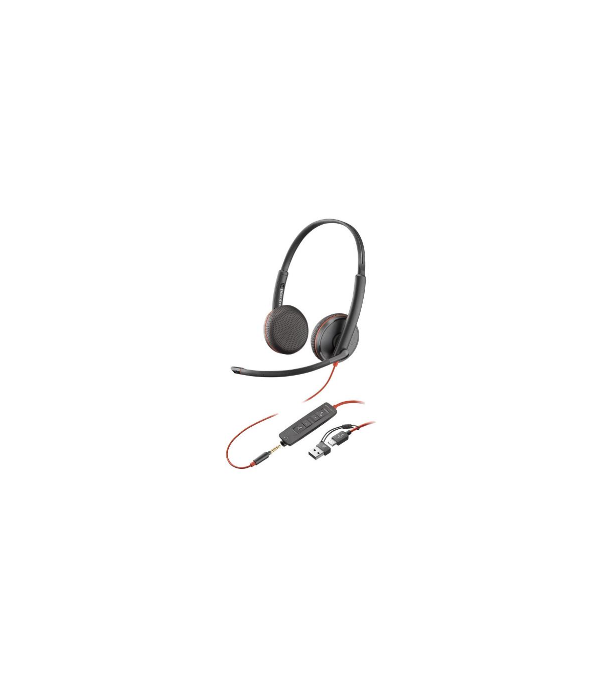 HP Poly Auriculares estéreo Poly Blackwire 3225 USB-C + Conector de 3,5 mm + Adaptador USB-C/A. Tipo de producto: Auriculares. Tecnología de conectividad: Alámbrico. Uso recomendado: Oficina/Centro de llamadas. Frecuencia de auricular: 200 - 6800 Hz. Peso: 119 g. Color del producto: Negro