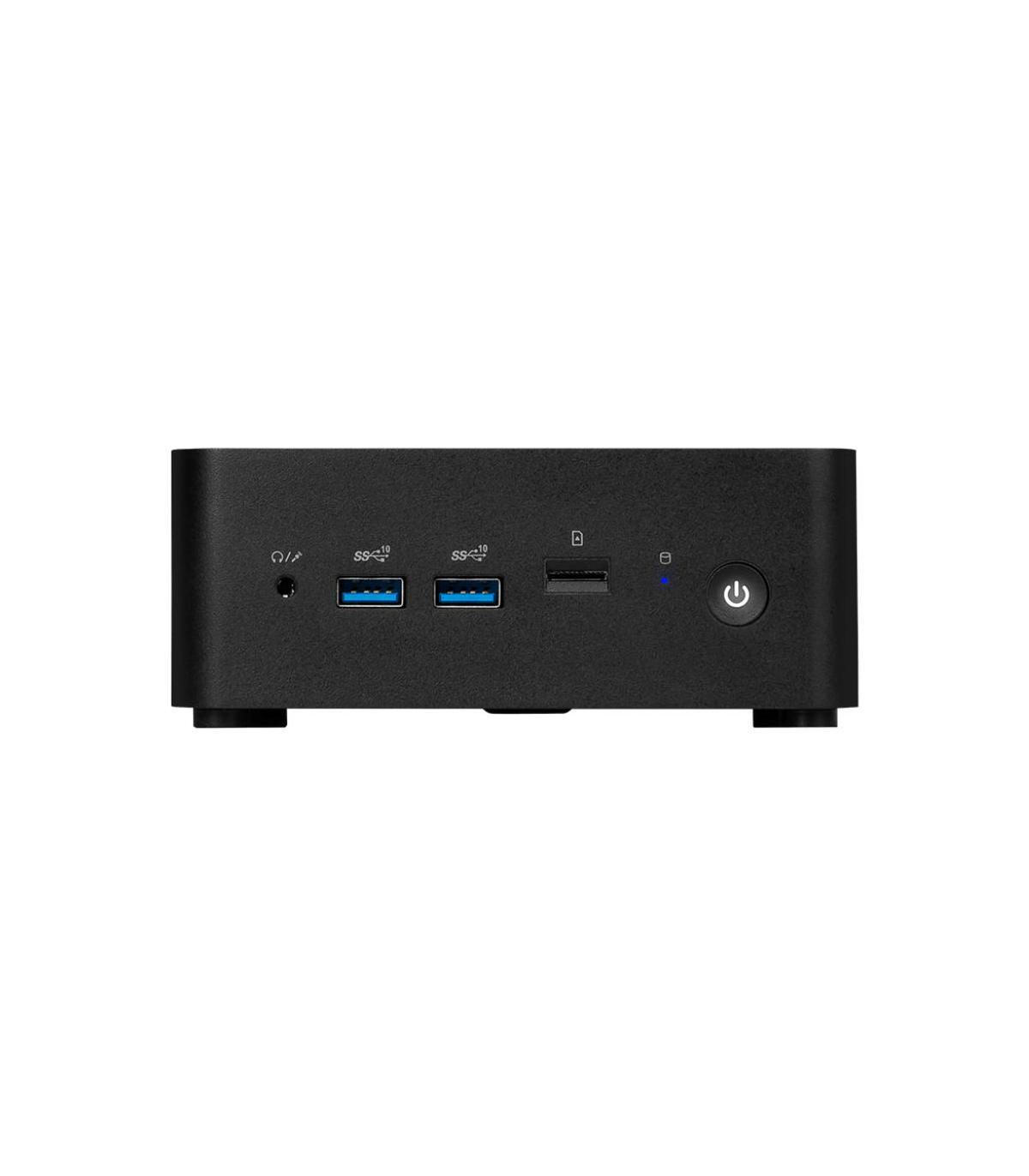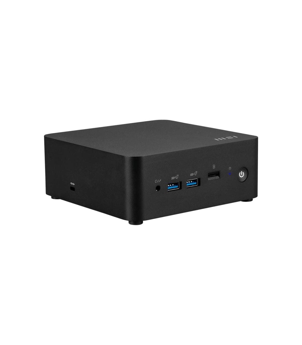 MSI Cubi NUC 1M. Frecuencia del procesador: 1,8 GHz, Familia de procesador: Intel Core 7, Modelo del procesador: 150U. Memoria interna: 16 GB, Tipo de memoria interna: DDR5-SDRAM, Velocidad de memoria del reloj: 5600 MHz. Capacidad total de almacenaje: 1 TB, Unidad de almacenamiento: SSD, Tarjeta de lectura integrada. Modelo de adaptador gráfico incorporado: Intel Graphics. Sistema operativo instalado: Windows 11 Pro. Tipo de chasis: Mini PC. Tipo de producto: Mini PC. Peso: 625 g. Color del producto: Negro