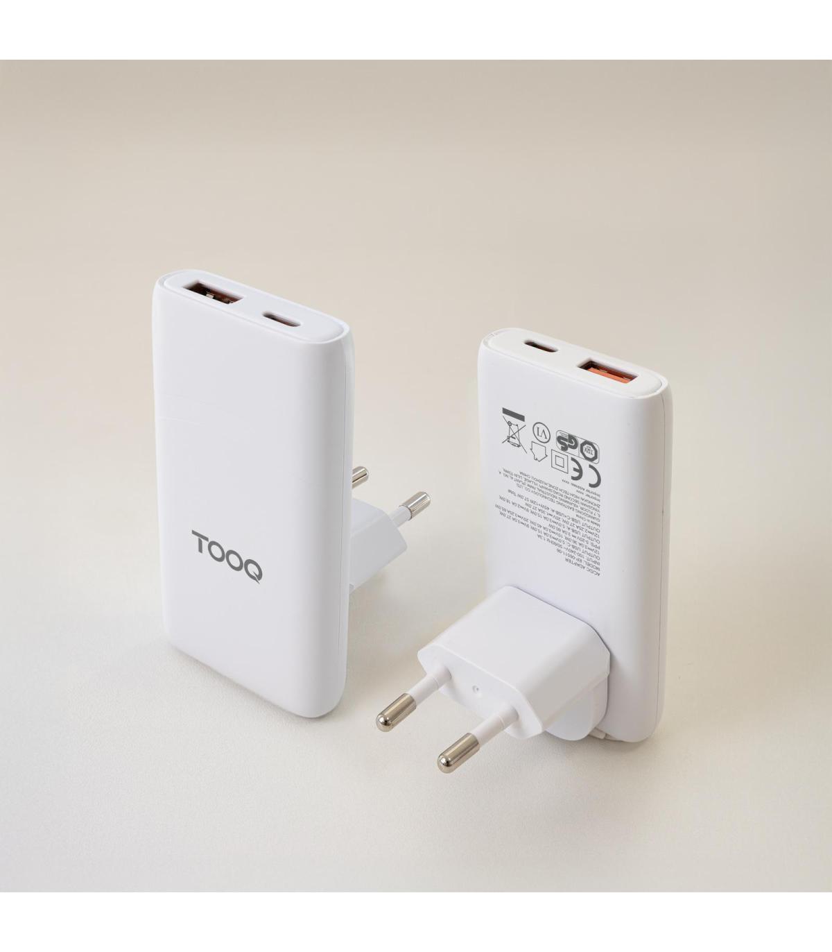TooQ Cargador de viaje Tipo C y Tipo A, GaN 65W, USB-C/PD + USB-A/QC, Blanco. Tipo de cargador: Interior, Alimentación: Corriente alterna, Compatibilidad del cargador: Universal. Voltaje de entrada: 100 - 240 V, Voltaje de salida máximo: 20 V, Corriente de salida de adaptador AC: 3,25 A. Cantidad de puertos USB 2.0: 1, Número de puertos USB Tipo C: 1, Carga rápida. Color del producto: Blanco