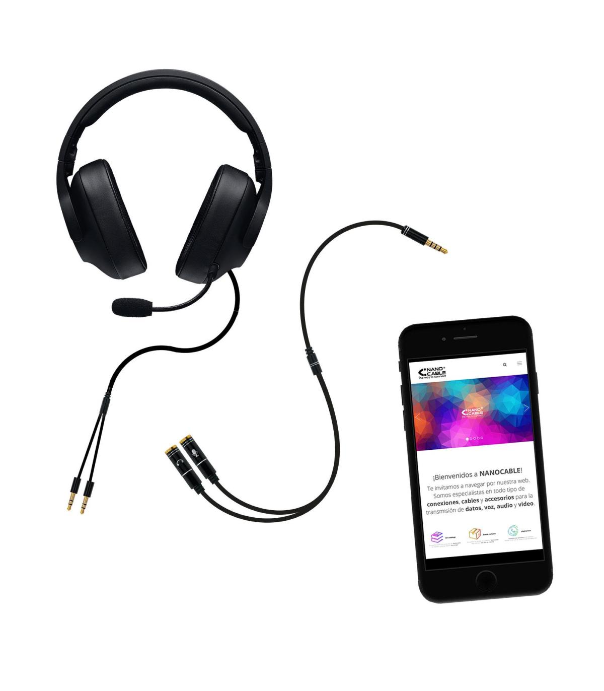 Este cable adaptador permite conectar auriculares y micrófono (headset) a cualquier dispositivo que disponga de un puerto de audio.