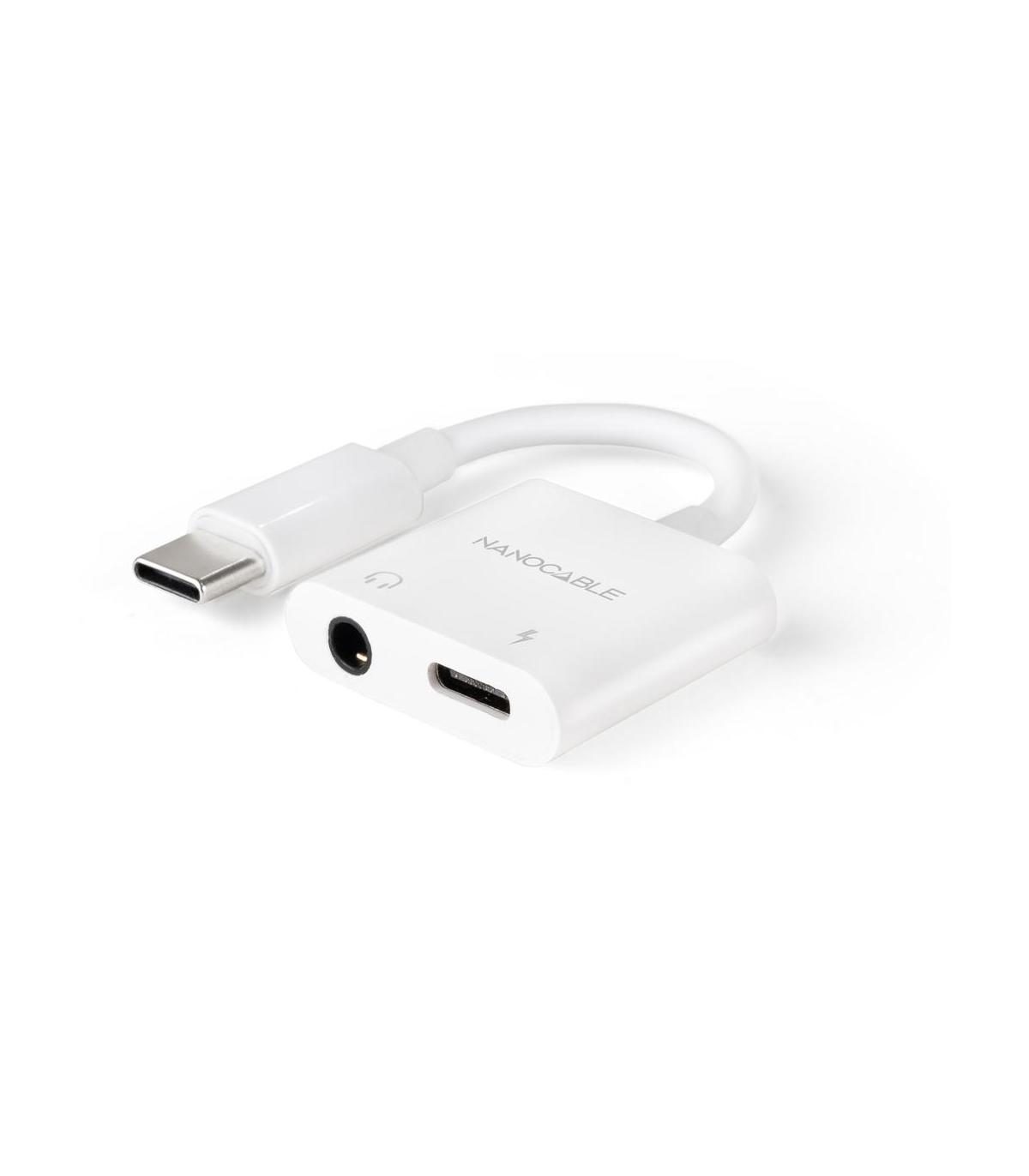 Nanocable Adaptador de Audio USB-C/M a Jack 3.5/H + USB-C/H PD 60W, 11.5 cm, Blanco, Alámbrico, USB 3.2 Gen 1 (3.1 Gen 1) Type-C, 60 W, Blanco, China, USB