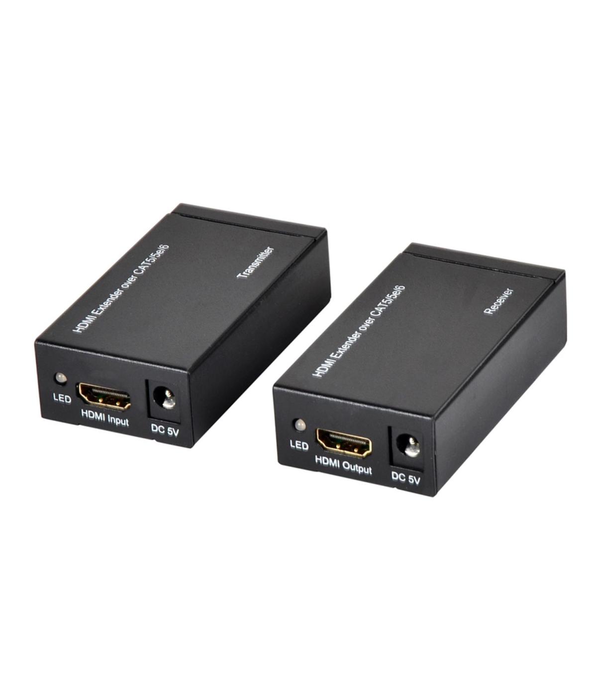 Conectar el transmisor con un cable HDMI de alta velocidad a su fuente de HDMI y conectar el receptor al televisor con un cable HDMI de alta velocidad. El transmisor y el receptor están conectados con el cable UTP una sola de hasta 60 metros. Tanto el emisor como el receptor vienen con un adaptador de CA adicional.