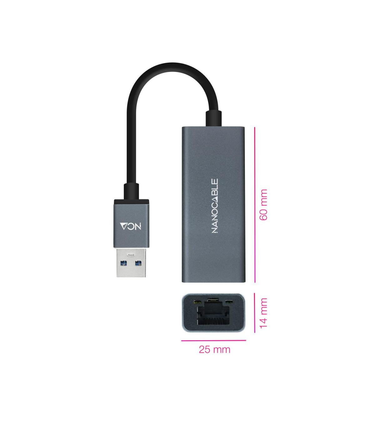 Nanocable Conversor USB 3.0 a Ethernet Gigabit 10/100/1000 Mbps, Aluminio, Gris, 15 cm, Alámbrico, USB, Ethernet, 1000 Mbit/s, Gris
