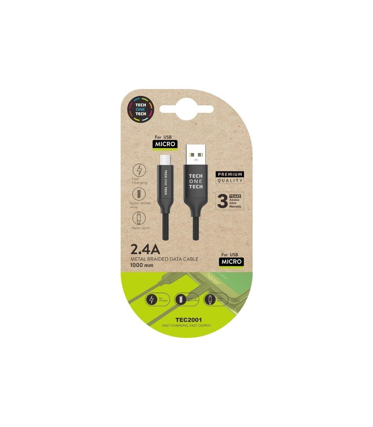 Cable USB 2.0 Tech One Tech TEC2001/ USB Macho - MicroUSB Macho/ 1m/ Negro