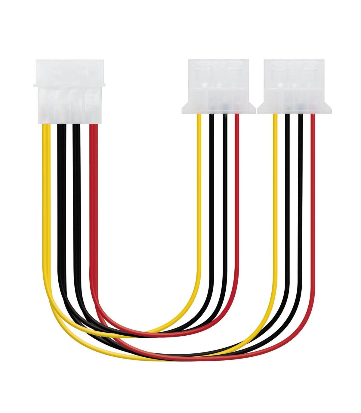 Nanocable CABLE ALIMENTACION MOLEX 5.25"/M-2x5.25"/H 20CM, Molex (4-pin), 2 x Molex (4-pin), 0,2 m, Macho, Hembra, Derecho