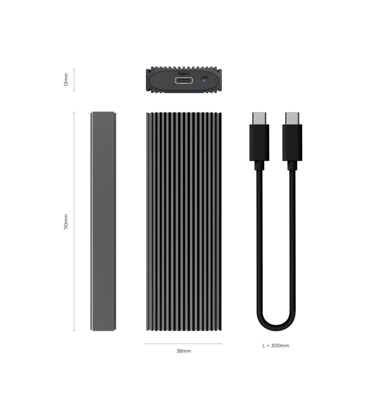 AISENS Caja Externa M.2 (NGFF) ASM2-023GR NVMe A USB3.2 Gen2, Gris. Tipo de producto: Caja externa para unidad de estado sólido (SSD). Número de unidades de almacenamiento compatibles: 1, Tamaño de la unidad de almacenamiento: M.2, Interfaces de disco de almacenamiento soportados: M.2, Capacidad máxima de almacenaje: 2 TB. Velocidad de transferencia de datos: 10 Gbit/s. Color del producto: Gris. Conector USB: USB Tipo C
