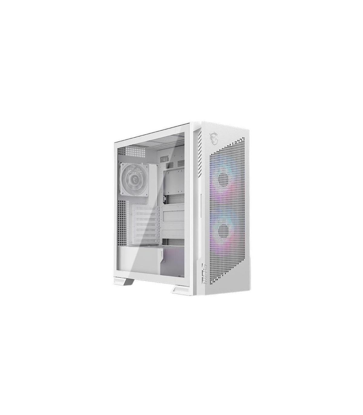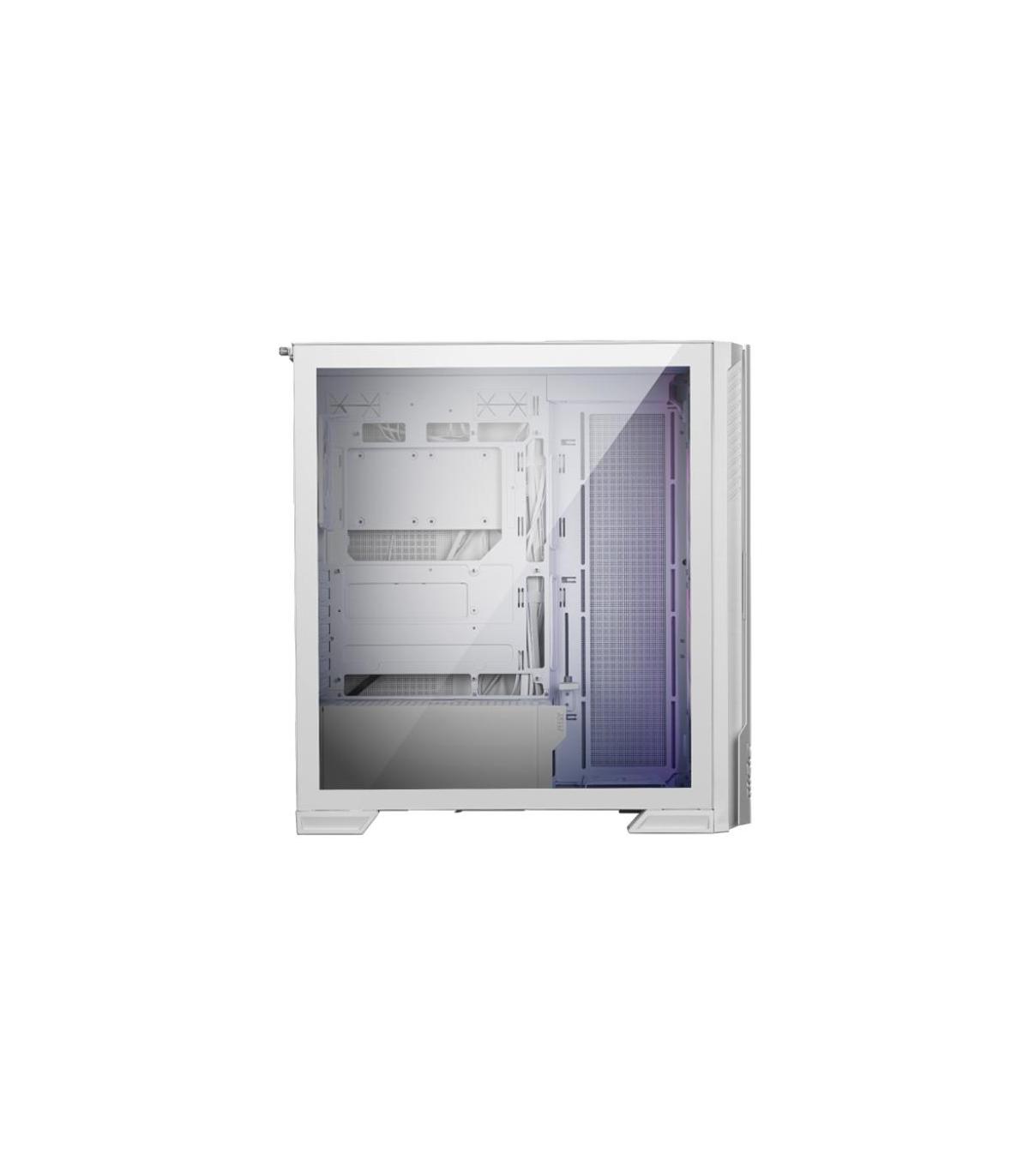 MSI MPG VELOX 300R AIRFLOW PZ. Factor de forma: Midi Tower, Tipo: PC, Color del producto: Blanco. Ubicación de fuente de alimentación: Fondo, Factores de forma de la fuente de alimentación compatibles: ATX. Ventiladores frontales instalados: 2x 160 mm, Diámetro de ventiladores frontales soportados: 120,140,160 mm, Diámetro de ventiladores secundarios soportados: 120 mm. Tamaños de disco duro soportados: 2.5,3.5", Factor de forma de disco SSD: 2.5". Ancho: 235 mm, Profundidad: 485 mm, Altura: 518 mm