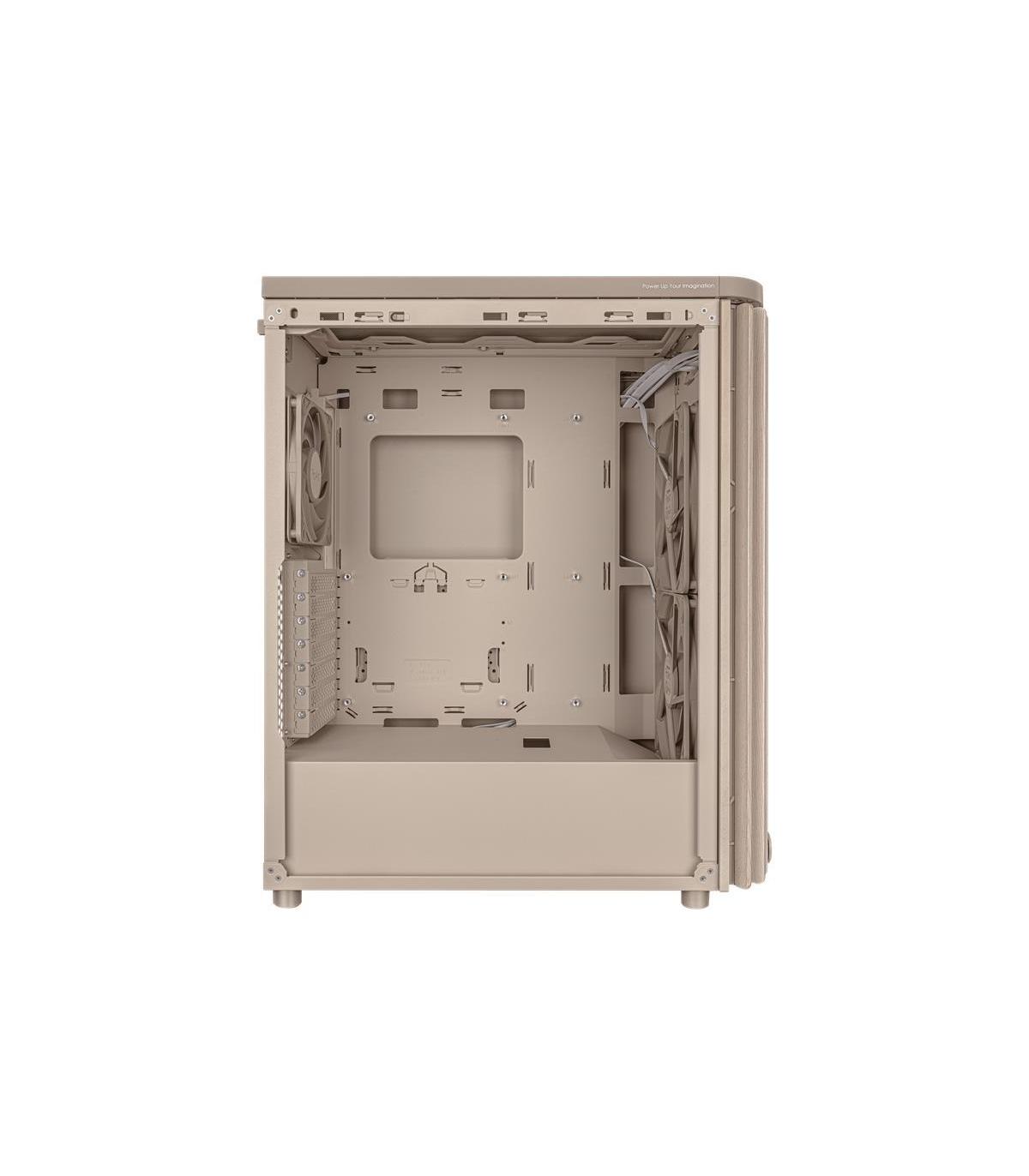 ProArt PA401 Wood Edition Beige – Chasis ATX con paneles de malla, compatibilidad con GPU de hasta 315 mm de longitud, compatibilidad con radiadores de 240 mm, ventiladores de 160 x 32 mm, cierre en el panel lateral izquierdo, cierre en los botones de encendido y reinicio, soporte para fuente de alimentación desmontable, clips para cables en la parte trasera.