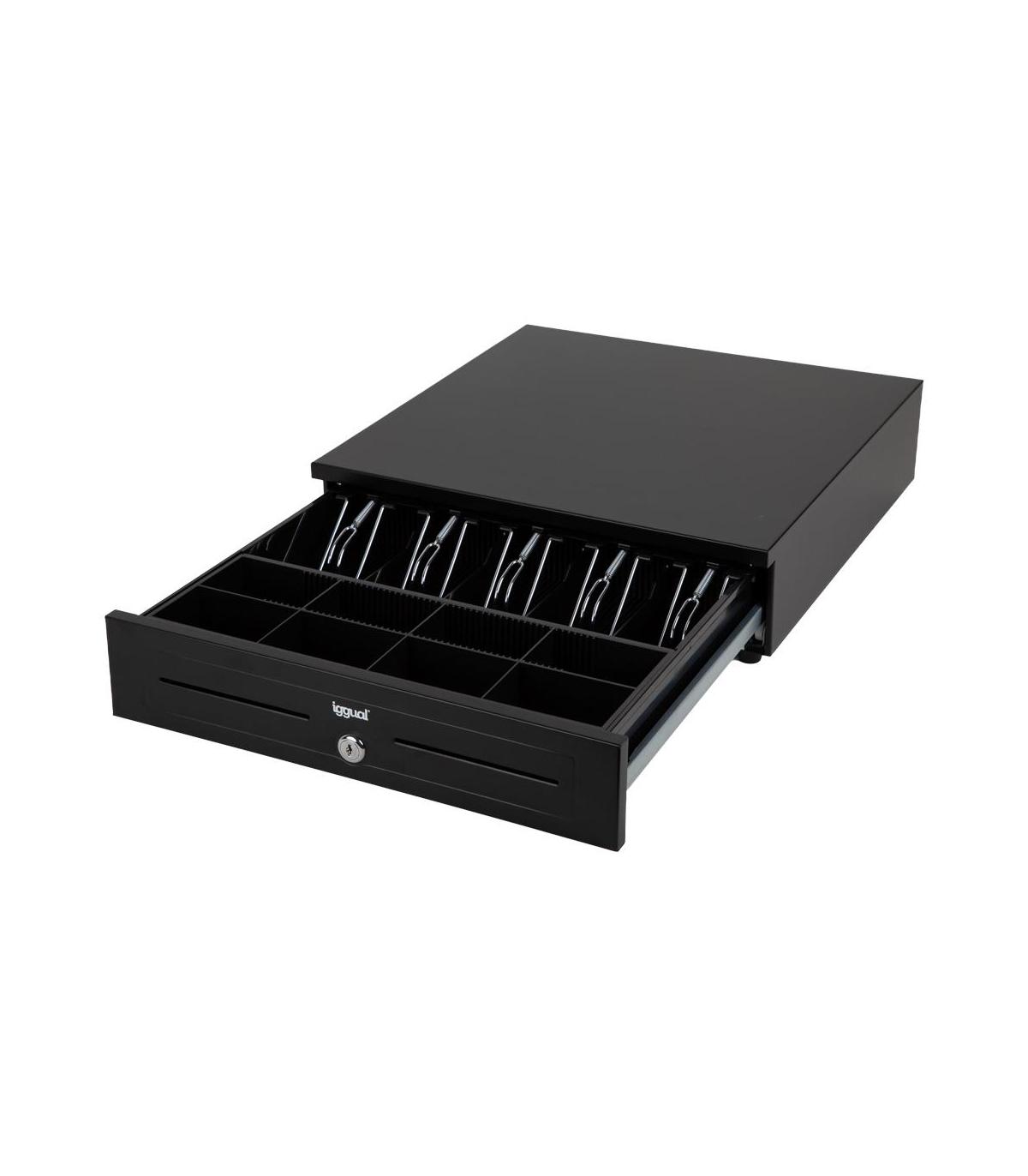 iggual Cajón portamonedas IRON-HD 41cm 5+8 negro, Cajón de efectivo automático y manual, Plástico, Acero, Negro, 12 V, 410 mm, 415 mm