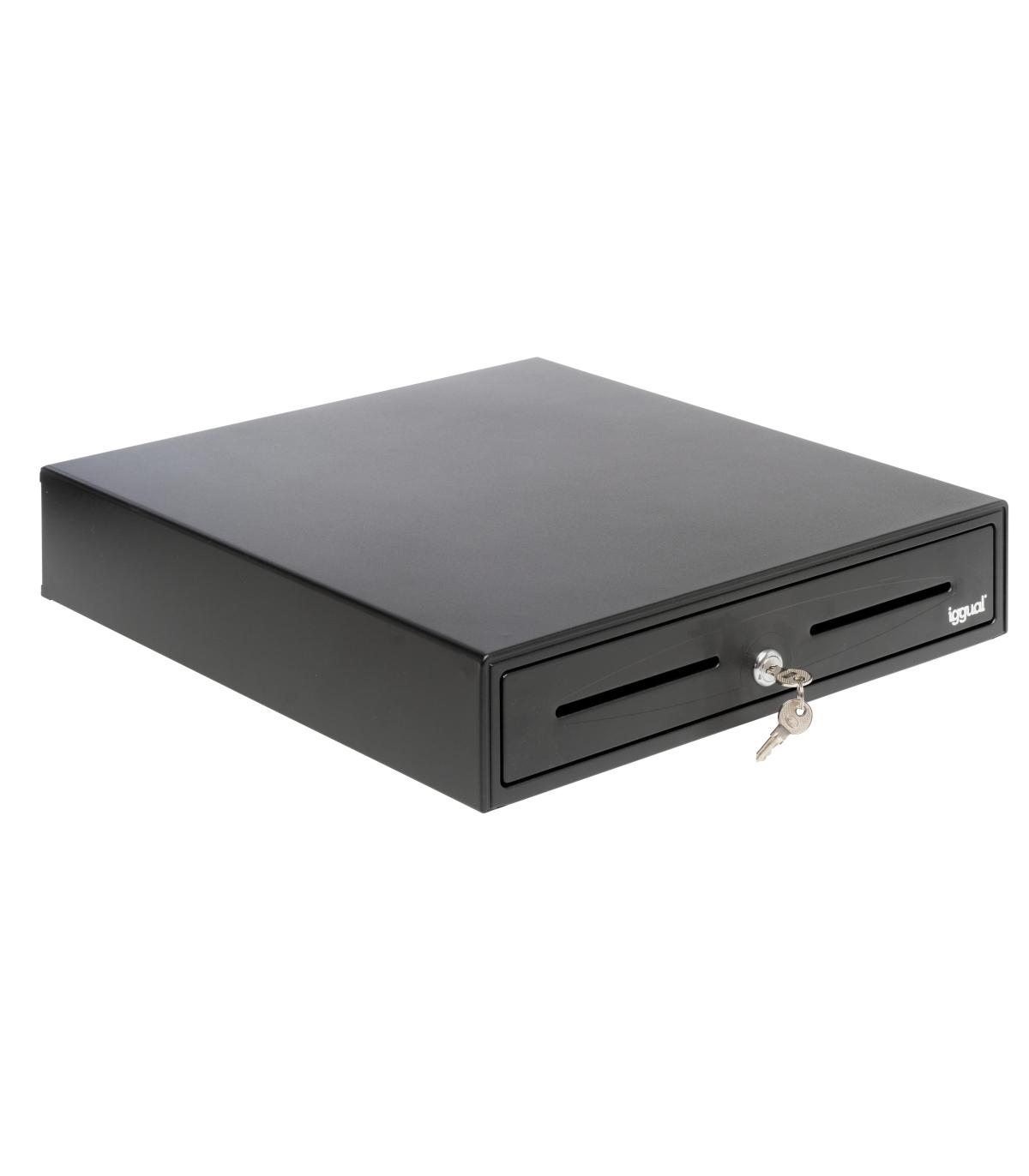iggual Cajón Portamonedas IRON-70 44,5cm 5+8 negro. Tipo de producto: Cajón de efectivo automático y manual, Color del producto: Negro, Tipo de fuente de alimentación: CC. Ancho: 425 mm, Profundidad: 445 mm, Altura: 90 mm