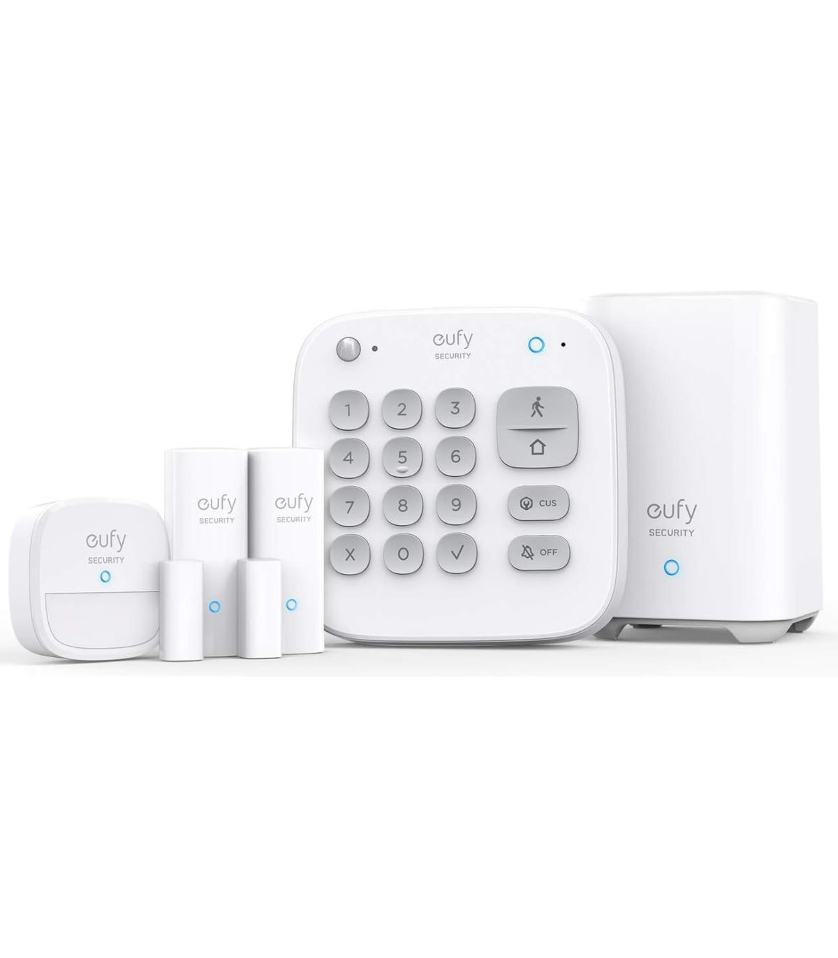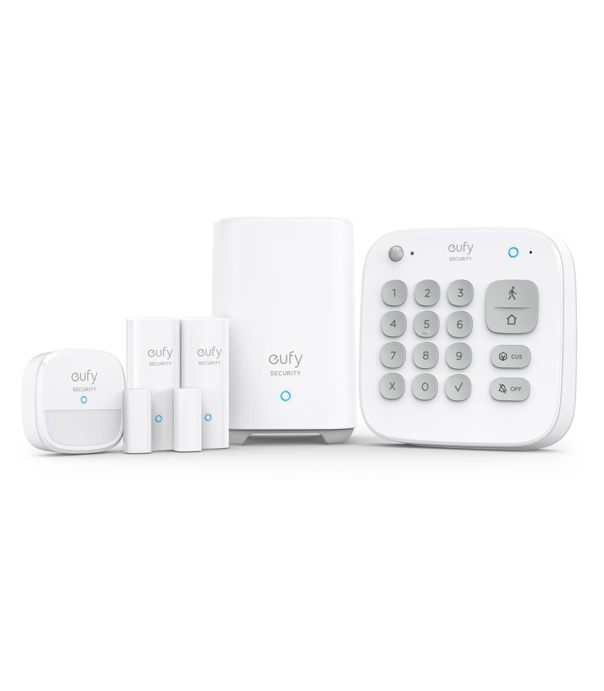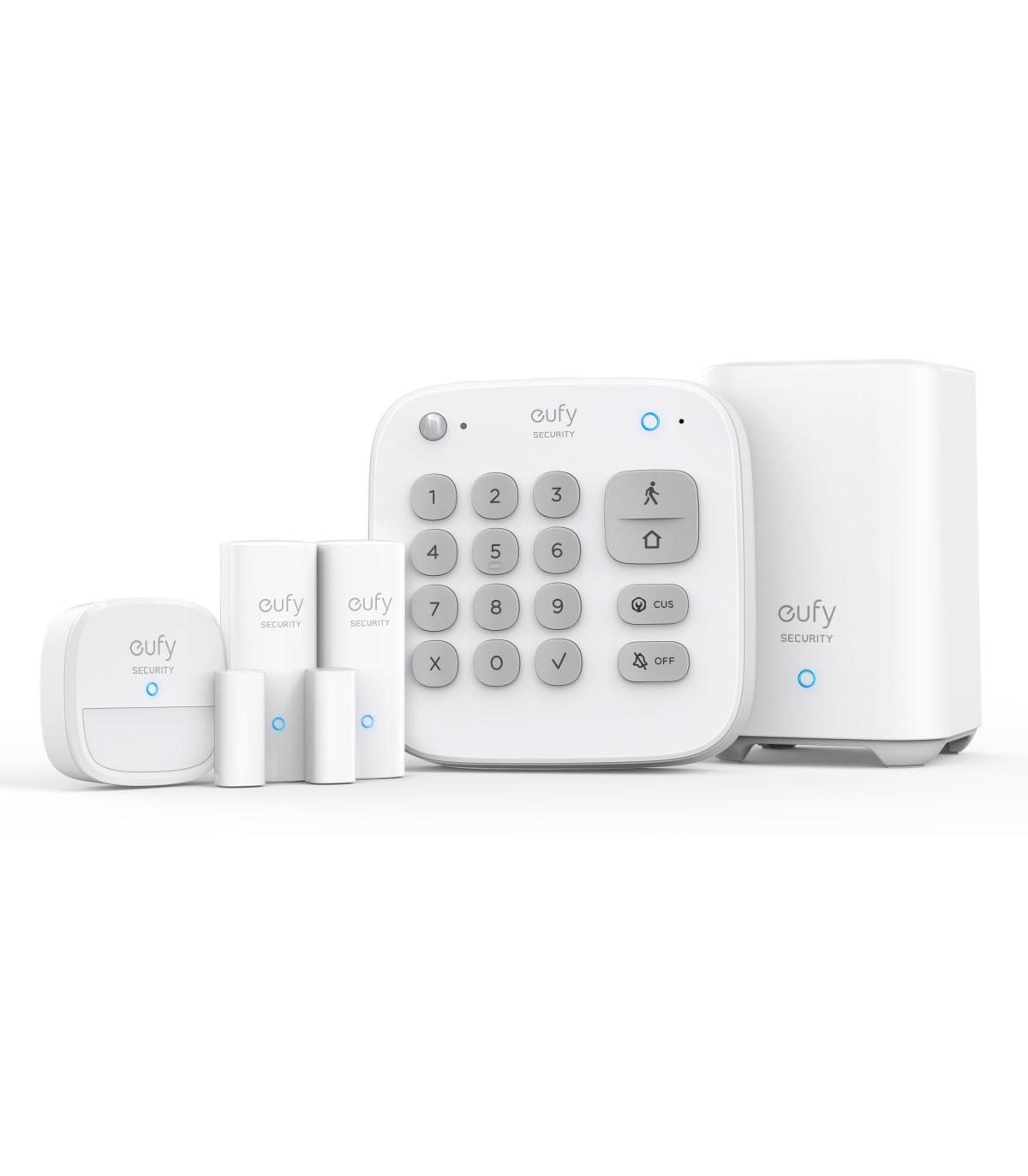 Eufy Security 5 piezas Smart Home Set, sistema de seguridad inteligente para el hogar, con cerradura de puerta, sensor de movimiento, 2 sensores de robo, sistema de alarma, compatible con eufyCam. Color del producto: Blanco, Tipo de notificación de alerta: GSM, SMS. Interfaz de la unidad de control central: RF inalámbrico, Tecnología de conectividad de la unidad de control central: Wi-Fi, Wi-Fi estándares: 802.11b, 802.11g, Wi-Fi 4 (802.11n). Interfaz del sensor de la puerta/ventana: RF inalámbrico, Tecnología de conectividad del sensor de la puerta/ventana: Wi-Fi, Temperatura operativa del sensor de la puerta/ventana (T-T): -10 - 50 °C. Tecnología de conectividad de la alarma: Wi-Fi, Temperatura de funcionamiento de la alarma (T-T): -10 - 50 °C, Dimensiones de la alarma (Ancho x Profundidad x Altura): 56,2 x 22 x 56,2 mm. Tipo de embalaje: Caja