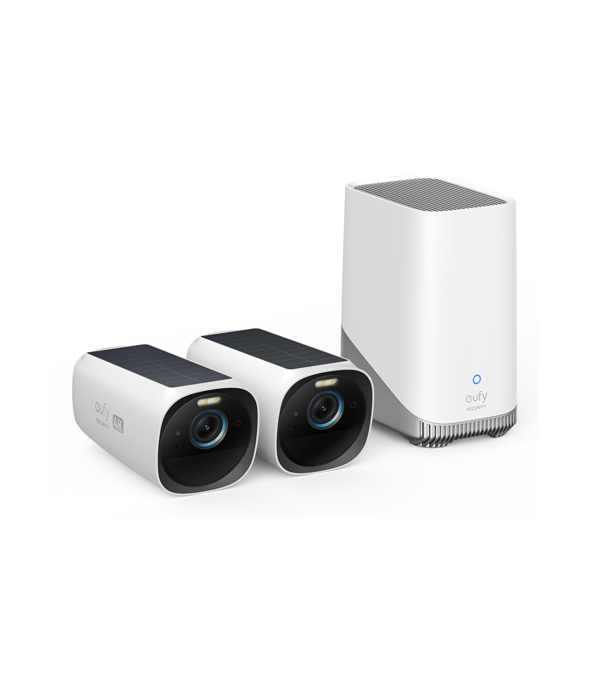 Kit de 2 cmaras eufyCam 3 de eufy Security, cmara de seguridad 4K con panel solar integrado, IA de reconocimiento facial, cmara de seguridad eufy con almacenamiento local ampliable, cmara exterior con energa constante, foco y visin nocturna en color, sin tasas mensuales