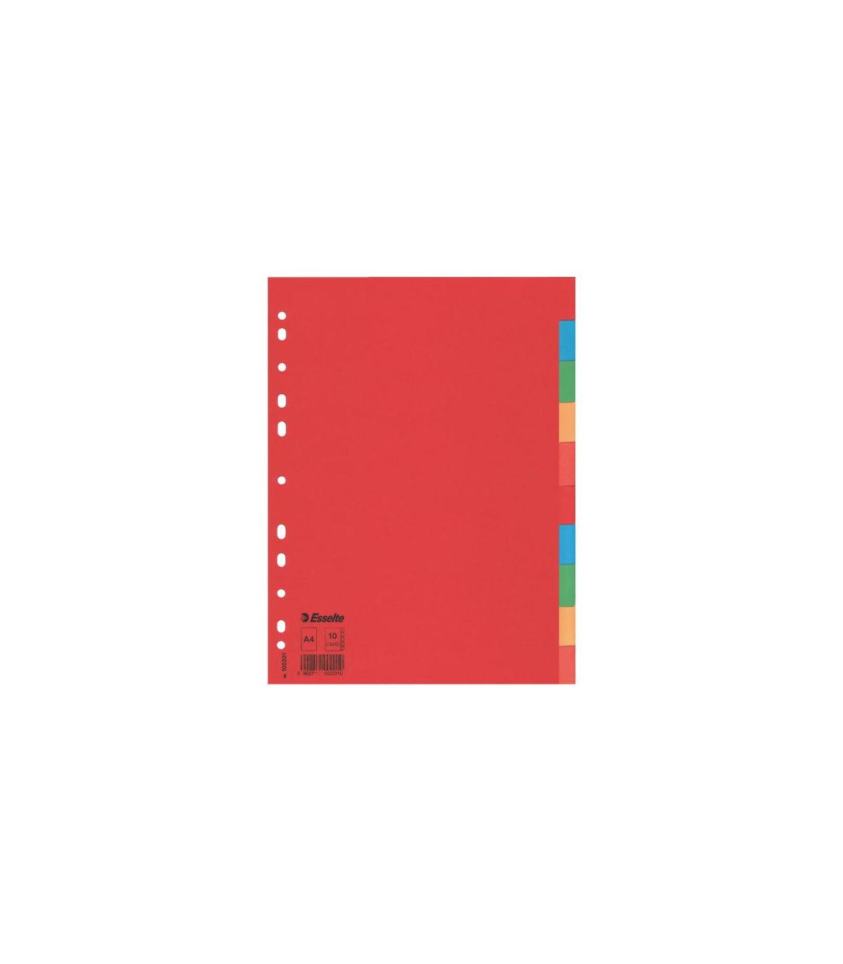 SEPARADOR DE CARTON CON 10 POSICIONES FORMATO A4 COLORES VIVOS ESSELTE 100201