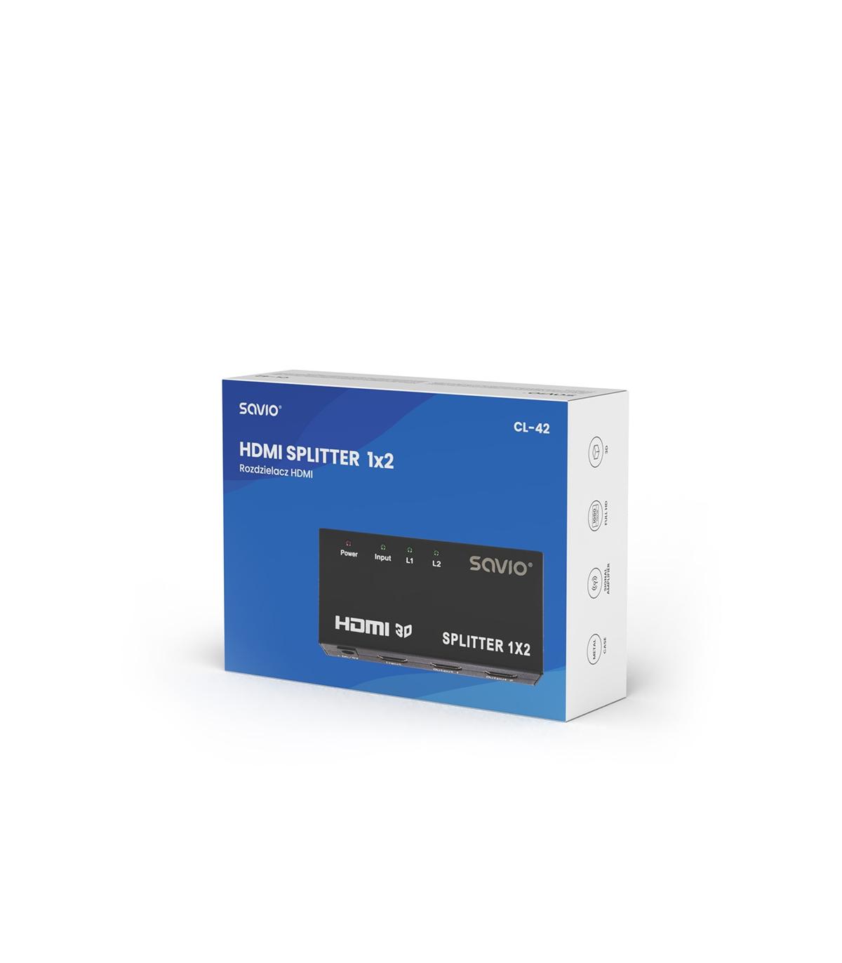 SPLITTER 1X2 HDMI FULL HD 3D SAVIO CL-42 NEGRO