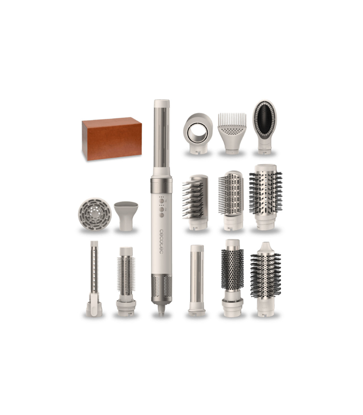 Bamba CeramicCare 14in1 AirGlam ChampagneMs cabezales. Ms cuidado. Ms AirGlam.Riza, alisa, ondula, seca... y mucho ms!Efecto CoandaRizos fciles, rpidos y perfectosLa revolucionaria tecnologa Coanda genera un flujo de aire caliente que atrae el cabello y lo envuelve suavemente alrededor del cilindro para crear rizos perfectos en cuestin de segundos.
