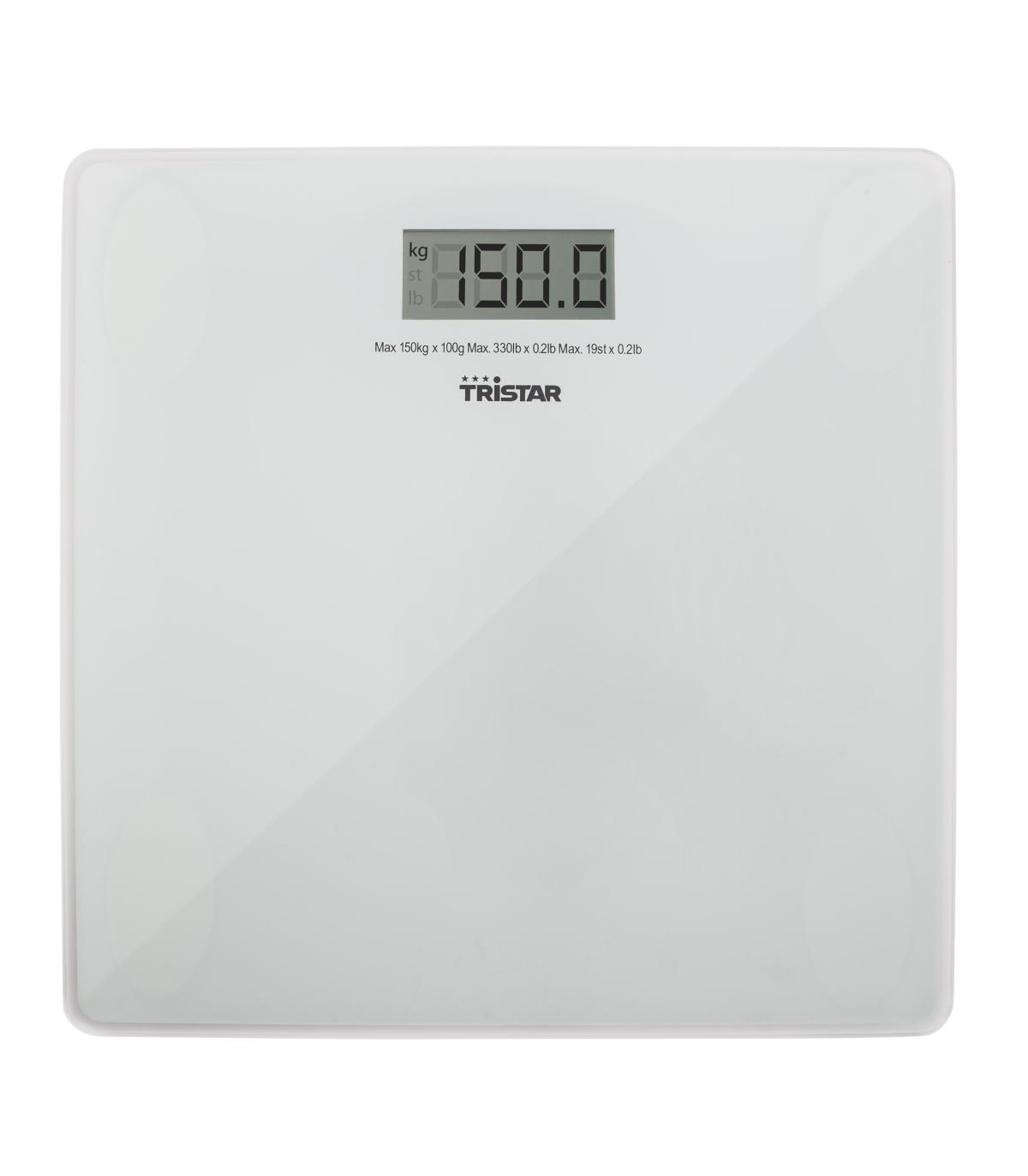 Tristar WG-2419 Báscula personal, Báscula personal electrónica, 150 kg, 100 g, Transparente, Blanco, kg, lb, ST, Plaza