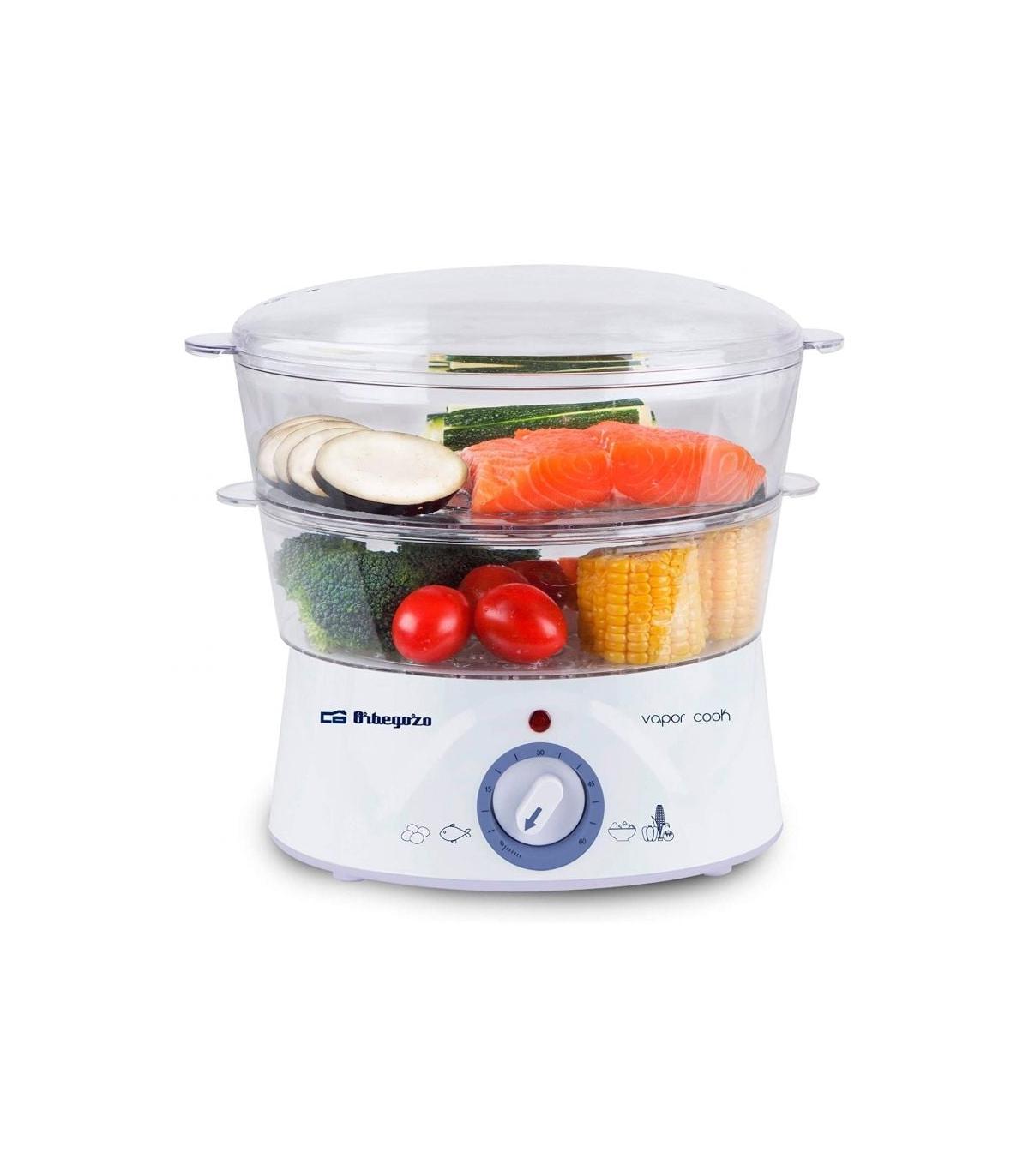 Los cocedores al vapor de Orbegozo nos permiten preparar alimentos de forma rpida, segura y sin gas. Cocinar tus ingredientes preferidos nunca fue tan fcil, y adems no tendrs la necesidad de encender la cocina. Esta prctica vaporera funciona con hasta dos recipientes, lo suficiente para preparar una buena racin de alimento; tiene una capacidad mxima de hasta cinco litros de contenido.