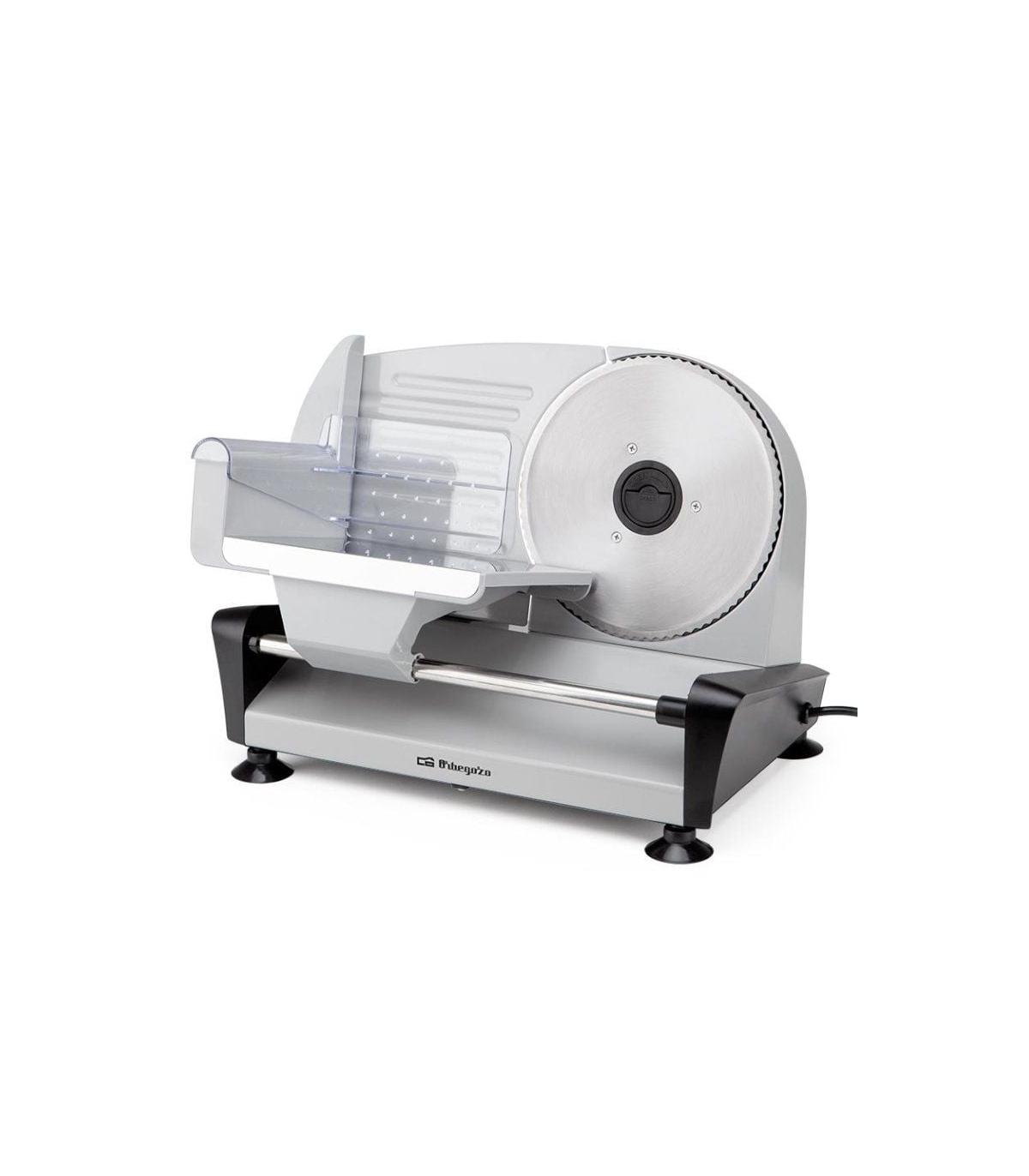 Cuenta con una potencia de 150 W y una cuchilla de acero inoxidable de 190 mm que puede extraerse con facilidad para una mejor limpieza. Adems, posee un prctico ajuste del grosor de entre 0 y 15 mm. Su funcionamiento es extremadamente sencillo e intuitivo. El deslizador y la bandeja para fiambres complementan el kit de este cortafiambres, que cuenta con el indiscutible sello de calidad de Orbegozo.