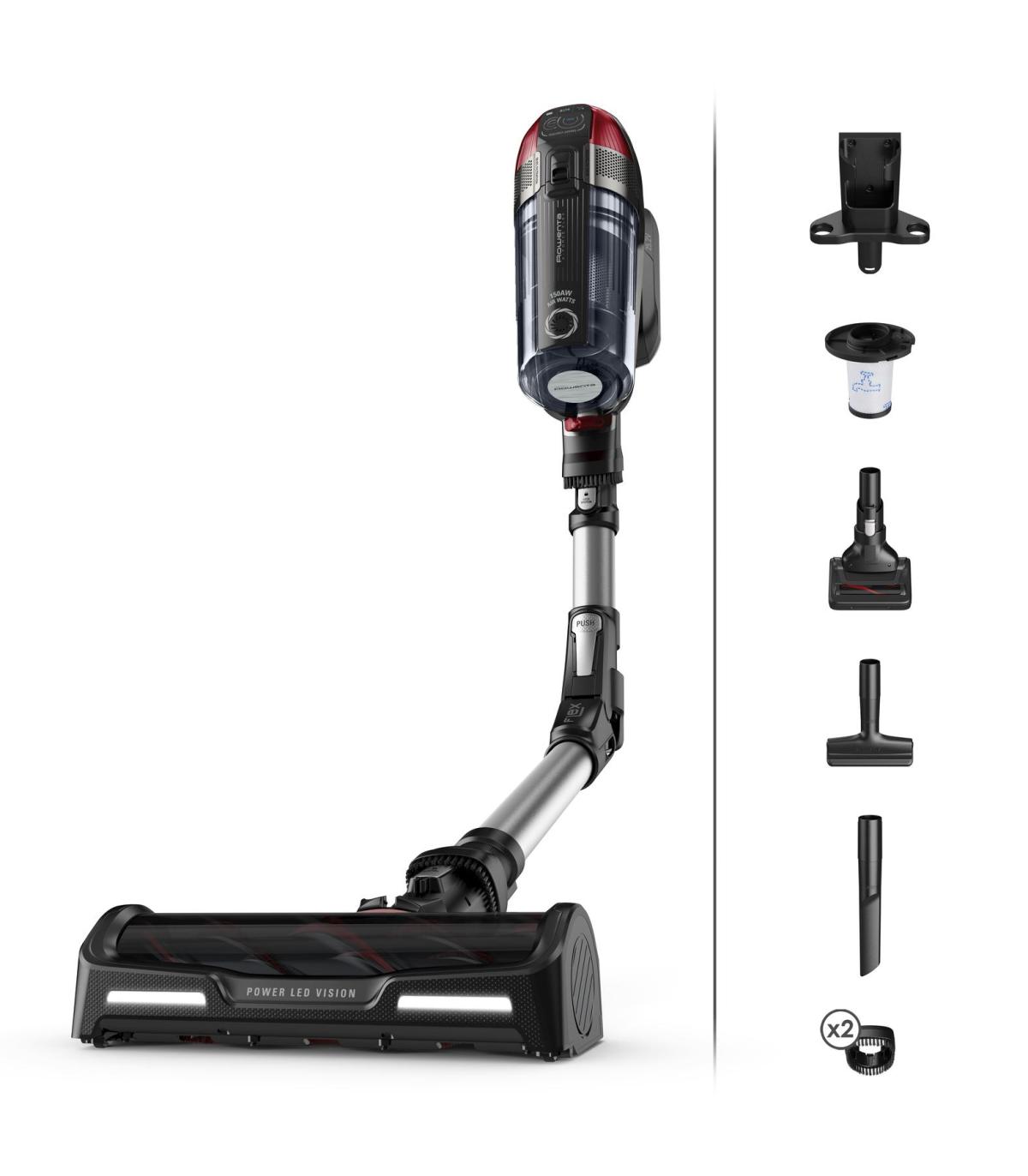 Rowenta RH98A7, Aspiradora escoba 2 en 1, Sin bolsa, Rojo, Gris, 0,9 L, Rectangular, Secar
