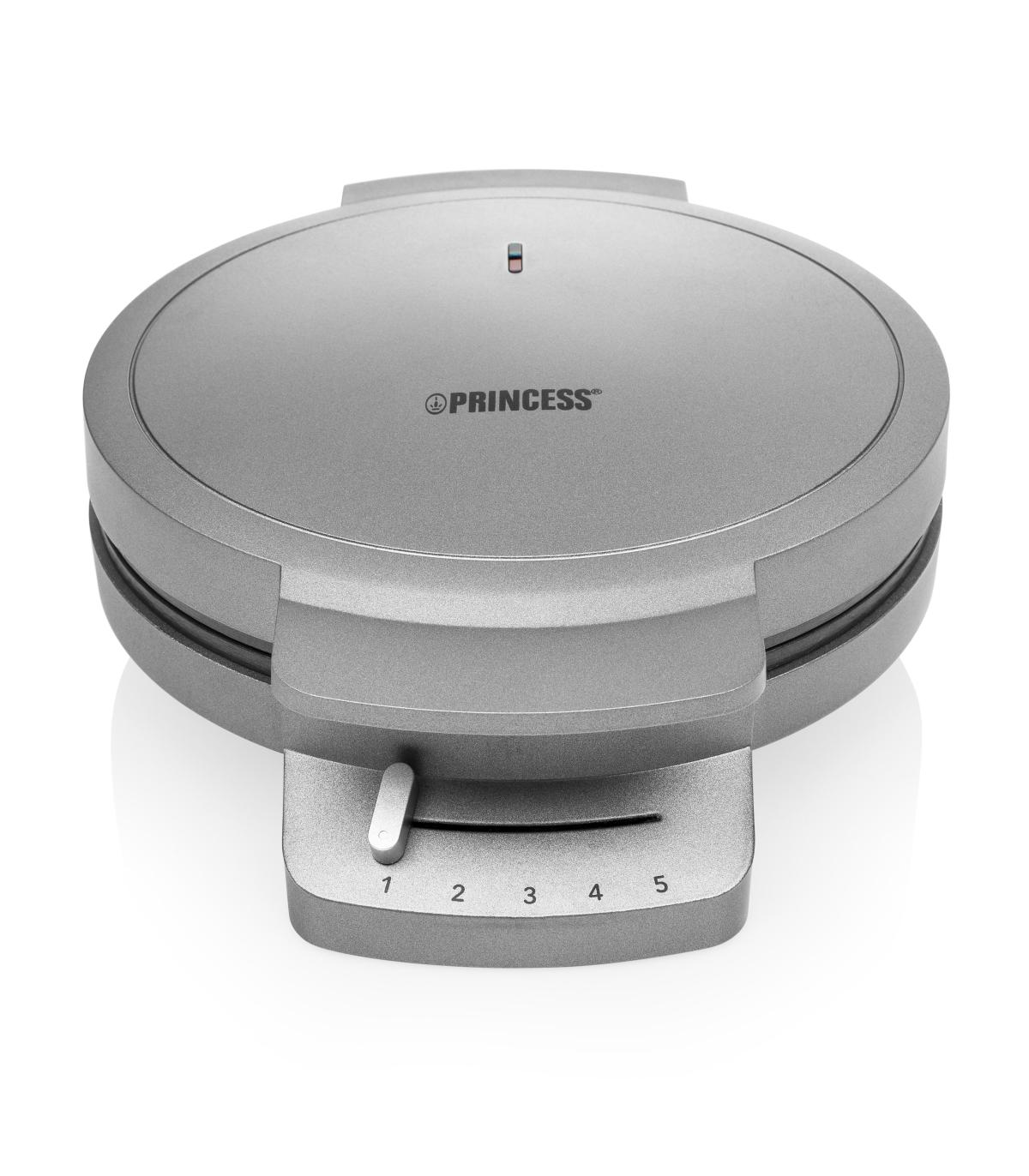 Princess 01.132380.01.001 Gofrera Deluxe. Número de gofres: 5 barquillo(s), Forma de gofre: Corazón (forma), Color del producto: Acero inoxidable. Potencia: 1200 W, Voltaje de entrada AC: 220 - 240 V, Frecuencia de entrada AC: 50 / 60 Hz. Peso: 1,15 kg. Ancho del paquete: 110 mm, Profundidad del paquete: 268 mm, Altura del paquete: 321 mm. País de origen: China, No contiene: Bisfenol A (BPA)