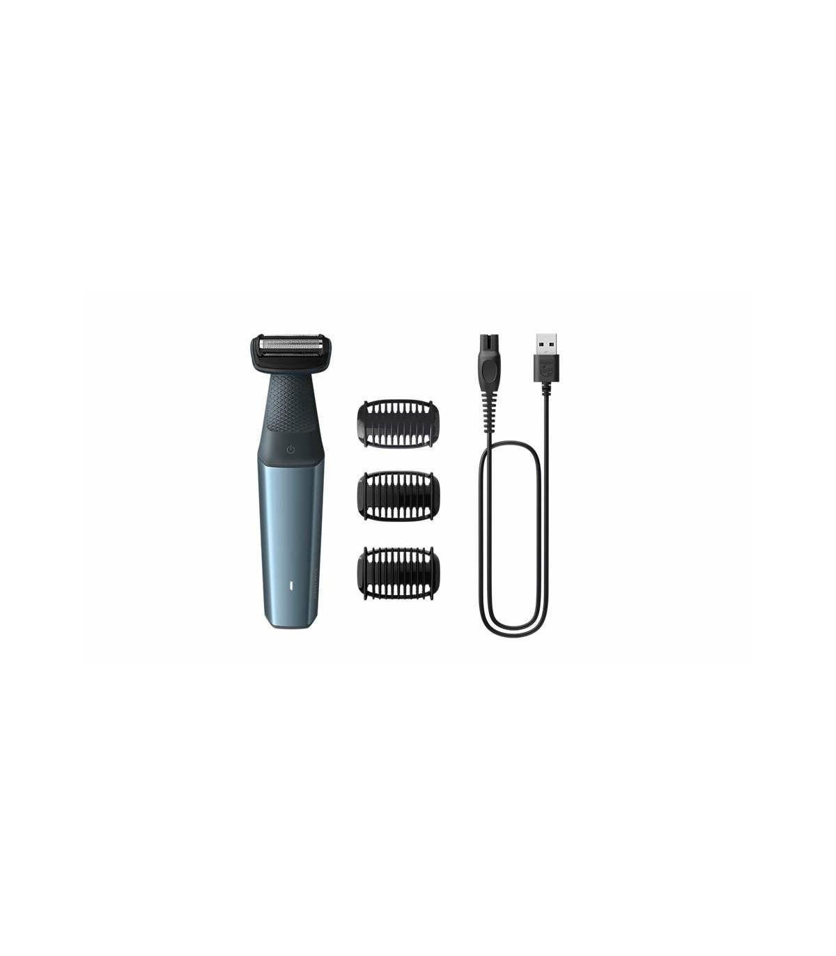 Philips Bodygroom Series 3000 BG3027/05 Recortador corporal e íntimo impermeable. Color del producto: Negro, Azul, Sistema de afeitado: Máquina de afeitar de láminas. Fuente de energía: Batería, Tecnología de batería: Ión de litio, Voltaje de entrada: 5 V