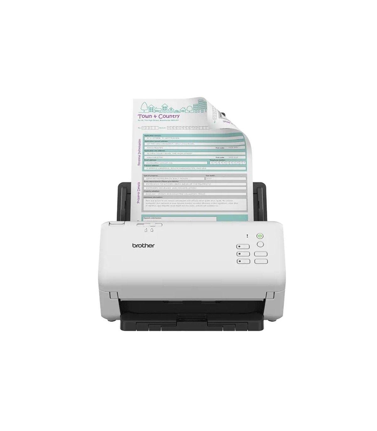 Brother ADS-4300N. Resolución óptica de escáner: 600 x 600 DPI, Resolución de escaneado mejorada: 1200 x 1200 DPI, Profundidad de entrada de color: 48 bit. Tipo de escaneado: Escáner con alimentador automático de documentos (ADF), Color del producto: Negro, Blanco, Tipo de control: Botones. Tipo de sensor: Dual CIS, Ciclo de trabajo diario (max): 6000 páginas, Fuentes de luz: LED. Capacidad del alimentador automático de documentos: 80 hojas. Tamaño máximo de papel ISO A-series: A4, Tipos de media soportados de escaneo: Tarjeta de visita, Papel normal, Tarjeta de plástico, Papel reciclado, Papel grueso, Papel fino, Espesor de la tarjeta (máx.): 1,1 mm