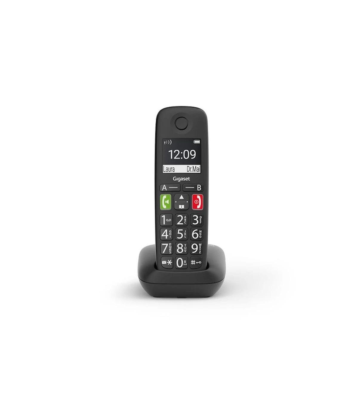 Si el simple hecho de marcar un número de teléfono es sencillo, el resto de la experiencia telefónica será mucho más agradable. Esta es exactamente la razón por la cual el teclado ergonómico del teléfono de teclas grandes Gigaset E290 ahora hace que usar el teléfono sea lo más cómodo posible. Las teclas grandes están iluminadas y claramente etiquetadas para garantizar una buena legibilidad. Puede guardar contactos particularmente importantes, como personas para llamar en caso de emergencia, en una de las dos teclas de repertorio (A y B). La función de llamada directa es útil si solo desea poder llamar a un número desde el teléfono. En situaciones difíciles, puede presionar cualquier botón y se marcará el número que haya almacenado.