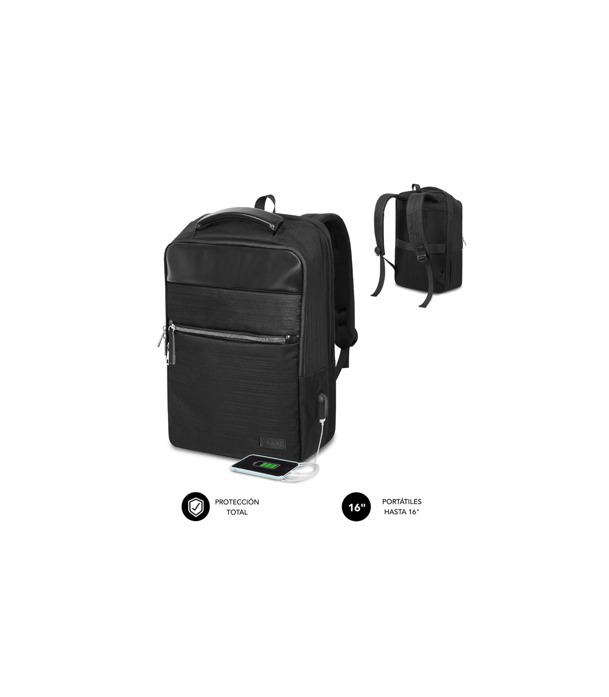 Mochila especialmente diseada para el mundo laboral y de los negocios. Gracias a su altsima calidad y comodidad, se convierte en tu mejor aliado de movilidad para ir con ella a cualquier lugar. Forma parte de la exclusiva gama Air Padding de SUBBLIMcon lo que tu porttil estar especialmente protegido. A todo ello se le suman diferentes departamentos y bolsillos para transportar todos tus accesorios, documentos o enseres personales. Ha sido fabricada con unos resistentes materiales que repelen el agua y cuenta con un puerto externo de carga USB para que puedas suministrar energa a tus dispositivos.AIR PADDINGProteccin total gracias a un novedoso sistema de Burbujas de espuma acolchadas anti-impactos. Ya no te debes preocupar de los golpes o cadas fortuitas que pueden daar tu ordenador.GRAN CAPACIDADMultitud de compartimentos y bolsillos independientes que te permiten llevar todos los accesorios y enseres personales a cualquier lugar de la forma ms ordenada.Puerto USBPermite conectar con el Power Bank ( no incluido ) y recargar tus dispositivos mviles ( Smartphone, Tablet, ebook, etc. ) para poder seguir usndolos mientras cargaTransporteGracias al asa de mano y las correas de hombro ergonmicas y acolchadas ofrece una mxima comodidad en su transporte