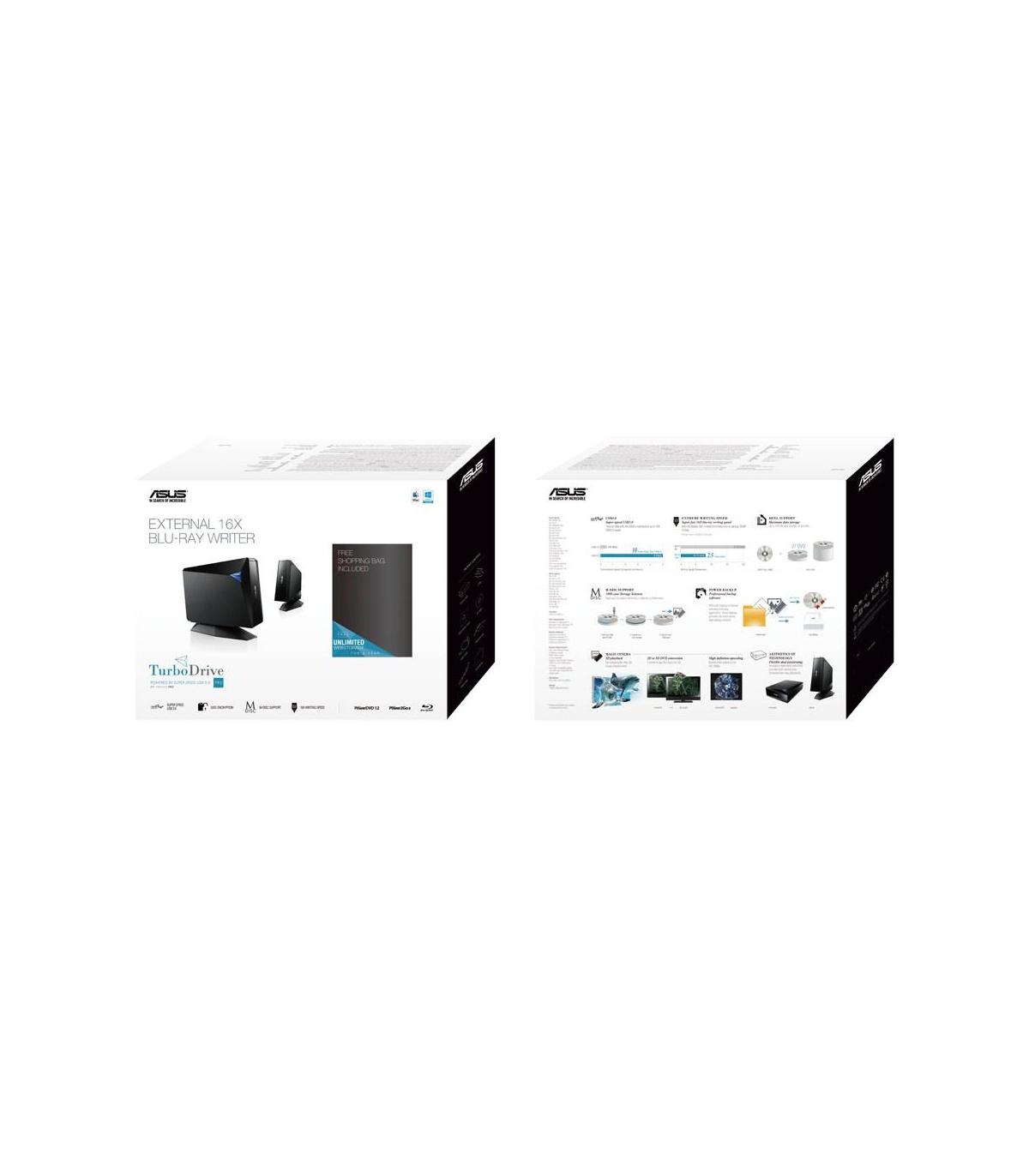 ASUS BW-16D1H-U PRO, Negro, Bandeja, Vertical/Horizontal, Sobremesa/Portátil, Blu-Ray DVD Combo, USB 3.2 Gen 1 (3.1 Gen 1)