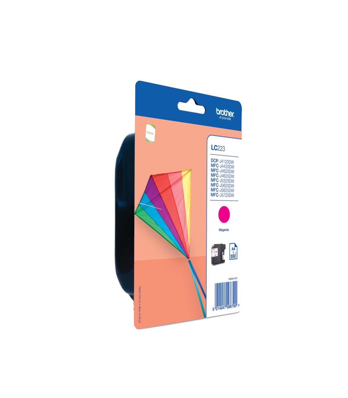 Brother LC223MBP. Tipo de suministro: Pack individual, Rendimiento de impresión de página con tinta de color: 550 páginas, Colores de impresión: Magenta, Cantidad por paquete: 1 pieza(s)