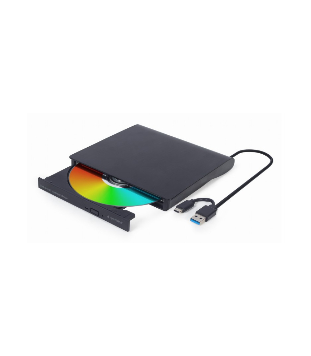 Gembird DVD-USB-031. Color del producto: Negro, Tipo de carga en disco: Frente, Certificacin: CE. Utilizar con: Escritorio, Tipo de unidad ptica: DVDRW, Interfaz: USB Tipo C. DVD+R, velociad de escritura: 8x, CD-R, velocidad de escritura: 24x, DVD-R, velocidad de escritura: 8x. CD-ROM, velocidad de lectura: 24x, DVD-ROM, velocidad mxima: 8x. Ancho: 140 mm, Profundidad: 140 mm, Altura: 18 mm