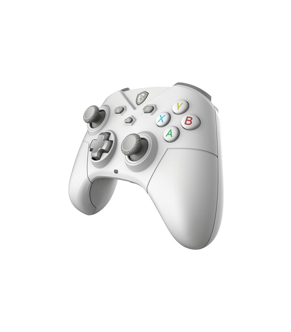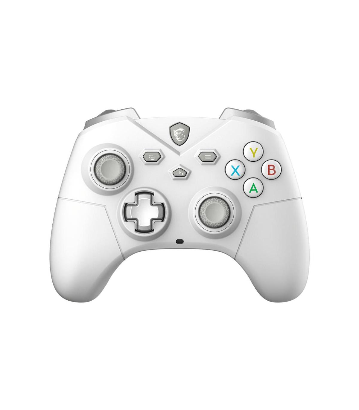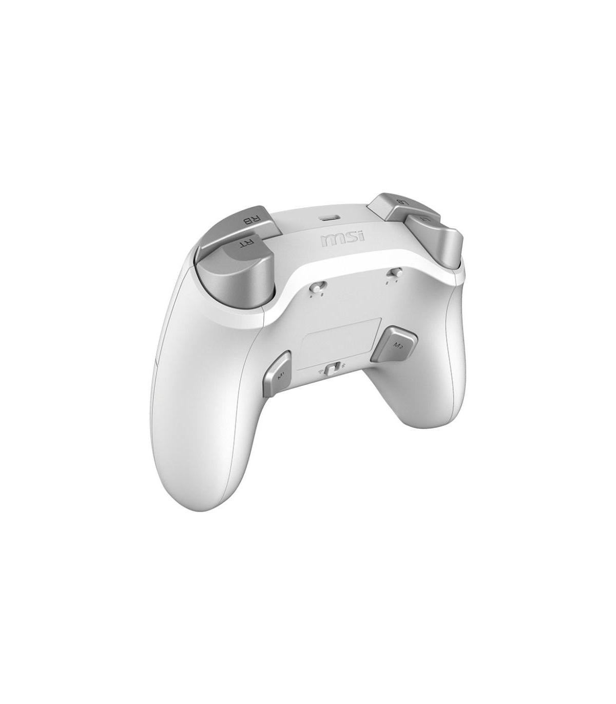 MSI FORCE GC300 WIRELESS WHITE. Tipo de dispositivo: Gamepad, Plataformas de juego soportadas: PC, Botones de función control para gaming: Botón Atrás, Cruceta, Botón macro, Botón de encendido, Botón de arranque, Botón turbo. Tecnología de conectividad: Inalámbrico y alámbrico, Interfaz del dispositivo: USB 2.0, Alcance de frecuencia: 2,4 GHz. Color del producto: Blanco, Longitud de cable: 2 m. Fuente de energía: Batería, Tipo de batería: Integrado, Tecnología de batería: Litio. Sistema operativo Windows soportado: Windows 10, Windows 11, Sistemas operativos móviles soportados: Android