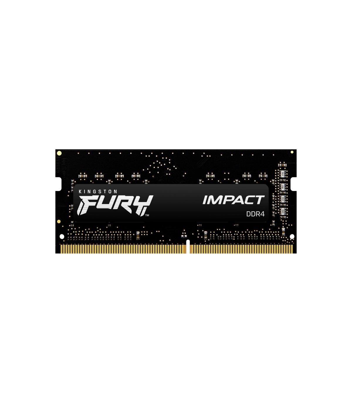 Kingston Technology FURY 8GB 3200MT/s DDR4 CL20 SODIMM Impact. Componente para: Portátil, Memoria interna: 8 GB, Diseño de memoria (módulos x tamaño): 1 x 8 GB, Tipo de memoria interna: DDR4, Forma de factor de memoria: 260-pin SO-DIMM, Latencia CAS: 20, Color del producto: Negro
