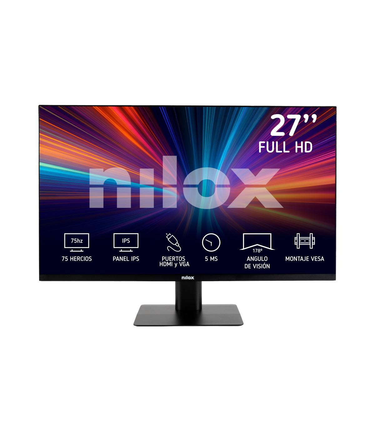 Nilox MONITOR 27" NXM27FHD11 LED IPS FHD 75HZ 16:9 5MS HDMI/VGA-Desprecintado. Diagonal de la pantalla: 68,6 cm (27"), Resolución de la pantalla: 1920 x 1080 Pixeles, Tipo HD: Full HD, Tecnología de visualización: LED, Tiempo de respuesta: 5 ms, Relación de aspecto nativa: 16:9, Ángulo de visión, horizontal: 178°, Ángulo de visión, vertical: 178°. montaje VESA