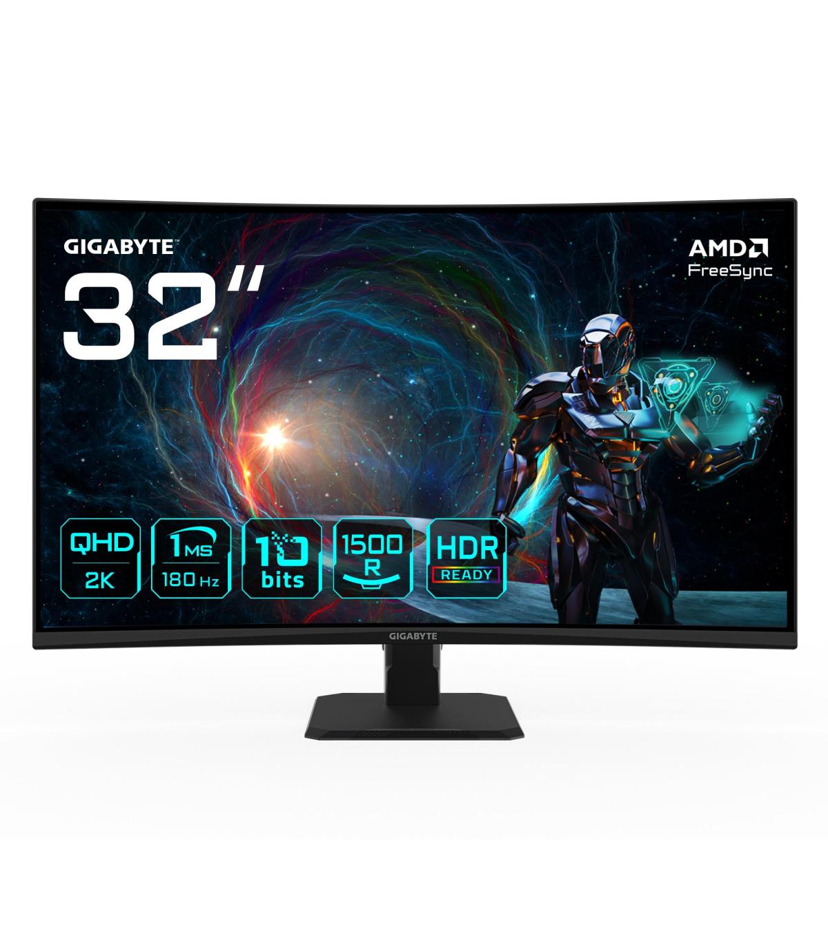 GIGABYTE GS32QCA 31.5" Monitor Curvo para Gaming QHD - 2560 x 1440, 180Hz, 1ms, 250 cd/m², FreeSync, HDR Ready, HDMI 2.0, DisplayPort 1.4, 80 cm (31.5"), 2560 x 1440 Pixeles, Quad HD, LED, 1 ms, Negro