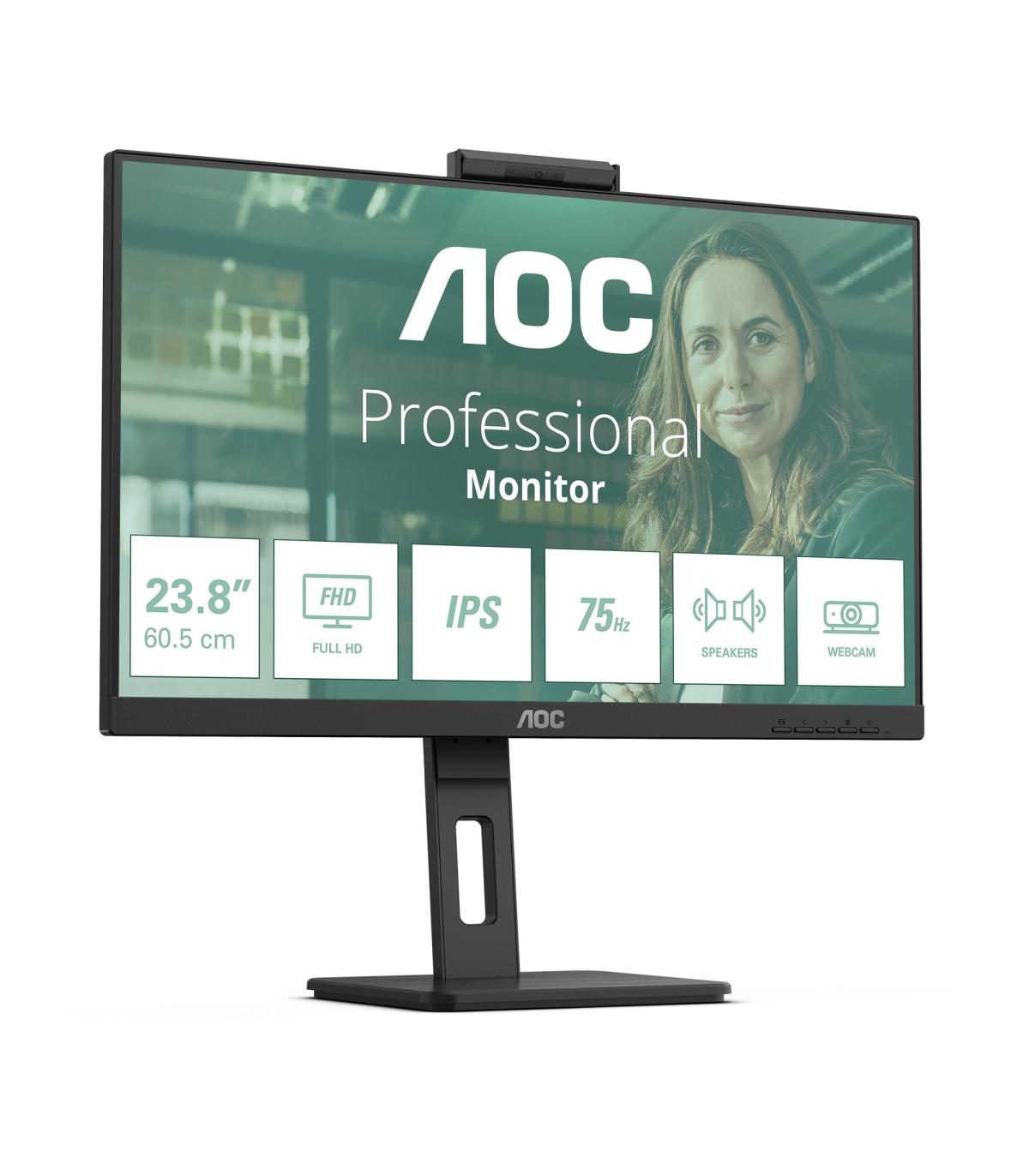 AOC 24P3QW. Diagonal de la pantalla: 60,5 cm (23.8"), Resolución de la pantalla: 1920 x 1080 Pixeles, Tipo HD: Full HD, Tiempo de respuesta: 4 ms, Relación de aspecto nativa: 16:9, Ángulo de visión, horizontal: 178°, Ángulo de visión, vertical: 178°. Altavoces incorporados. Conector USB incorporado, Versión de conector USB: 3.2 Gen 1 (3.1 Gen 1). montaje VESA, Ajustes de altura. Color del producto: Negro