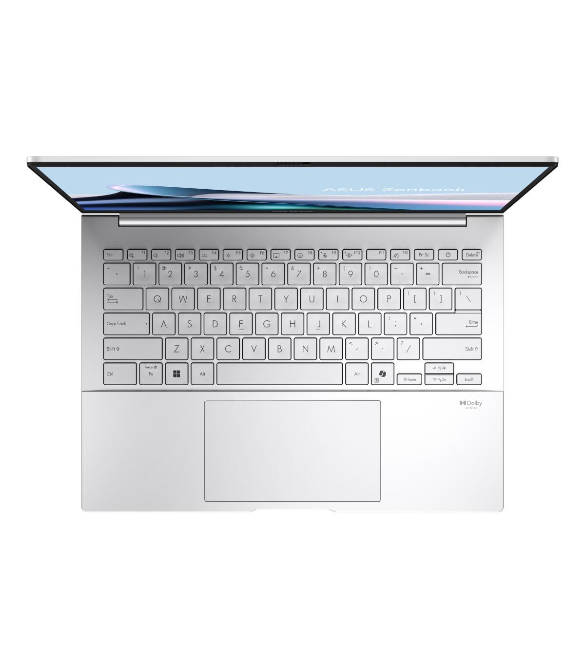 ASUS Zenbook 14 OLED UX3405CA-QD1244 - Ordenador Portátil 14" WUXGA (Intel Core Ultra 7 255H, 16GB RAM, 512GB SSD, Arc 140T, Sin Sistema Operativo) Niebla Plateada - Teclado QWERTY español. Tipo de producto: Portátil, Factor de forma: Concha. Familia de procesador: Intel Core Ultra 7, Modelo del procesador: 255H. Diagonal de la pantalla: 35,6 cm (14"), Tipo HD: WUXGA, Resolución de la pantalla: 1920 x 1200 Pixeles. Memoria interna: 16 GB, Tipo de memoria interna: LPDDR5x-SDRAM. Capacidad total de almacenaje: 512 GB, Unidad de almacenamiento: SSD. Modelo de adaptador gráfico incorporado: Intel Arc 140T. Color del producto: Plata. Peso: 1,22 kg