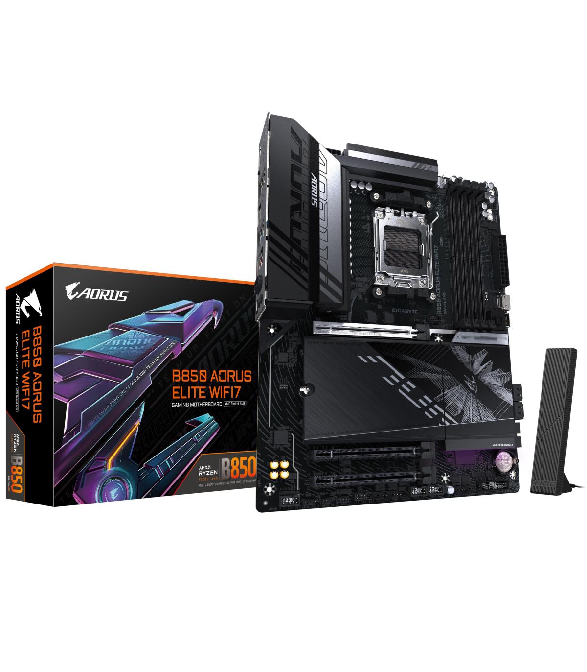 GIGABYTE B850 AORUS ELITE WIFI7 Placa Base - Procesadores AMD Ryzen Serie 9000, VRM digital de 14+2+2 fases, hasta 8200MHz DDR5 (OC), 1xPCIe 5.0 + 2xPCIe 4.0 M.2, LAN 2.5, WIFI 7, USB 3.2 Gen 2x2. Fabricante de procesador: AMD, Socket de procesador: Zócalo AM5, Procesador compatible: AMD Ryzen 7000 Series, AMD Ryzen 8000 Series, AMD Ryzen 9000 Series. tipos de memoria compatibles: DDR5-SDRAM, Memoria interna máxima: 256 GB, Tipo de ranuras de memoria: DIMM. Interfaces de disco de almacenamiento soportados: M.2, SATA III, Tipos de unidades de almacenamiento admitidas: HDD & SSD, Niveles RAID: 0, 1, 10. Máxima resolución: 4096 x 2160 Pixeles. Tipo de interfaz ethernet: 2.5 Gigabit Ethernet, Estándar Wi-Fi: Wi-Fi 7 (802.11be), Wi-Fi estándares: 802.11a, 802.11b, 802.11g, Wi-Fi 4 (802.11n), Wi-Fi 5 (802.11ac), Wi-Fi 6 (802.11ax), Wi-Fi 6E...