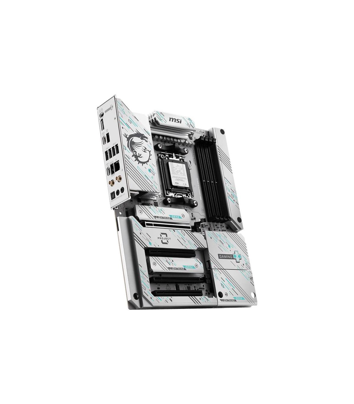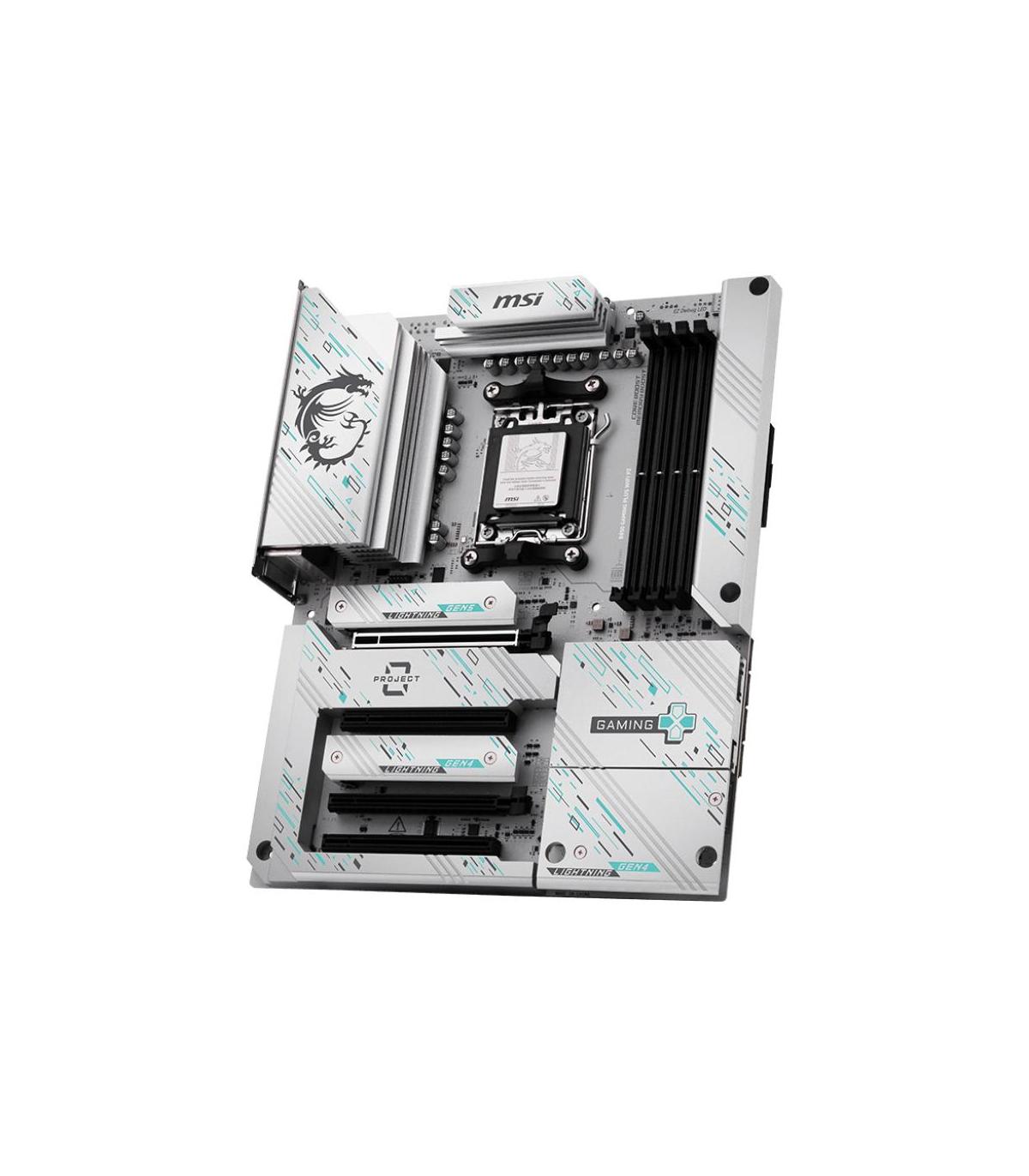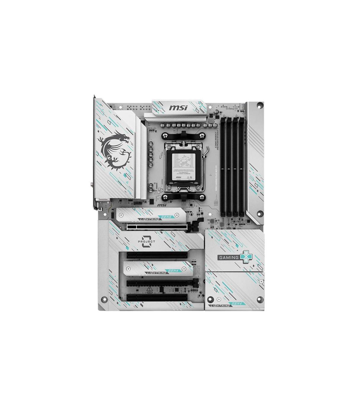 MSI B850 GAMING PLUS WIFI PZ. Fabricante de procesador: AMD, Socket de procesador: Zócalo AM5, Procesador compatible: AMD Ryzen 7000 Series, AMD Ryzen 8000 Series, AMD Ryzen 9000 Series. tipos de memoria compatibles: DDR5-SDRAM, Memoria interna máxima: 256 GB, Tipo de ranuras de memoria: DIMM. Interfaces de disco de almacenamiento soportados: M.2, Micro SATA III, Tipos de unidades de almacenamiento admitidas: HDD & SSD, Niveles RAID: 0, 1, 5, 10. Tipo de interfaz ethernet: 5 Gigabit Ethernet, Estándar Wi-Fi: Wi-Fi 7 (802.11be), Wi-Fi estándares: 802.11a, 802.11b, 802.11g, Wi-Fi 4 (802.11n), Wi-Fi 5 (802.11ac), Wi-Fi 6 (802.11ax), Wi-Fi 6E.... Componente para: PC, Factor de forma: ATX, Familia del chipset: AMD