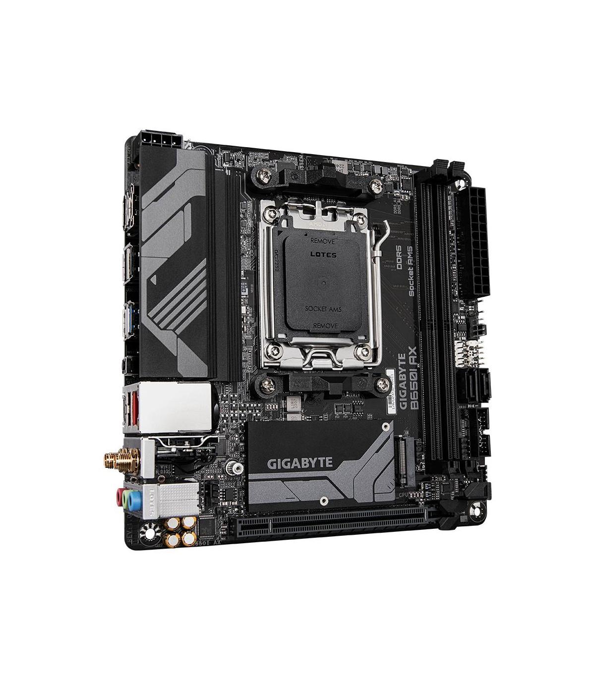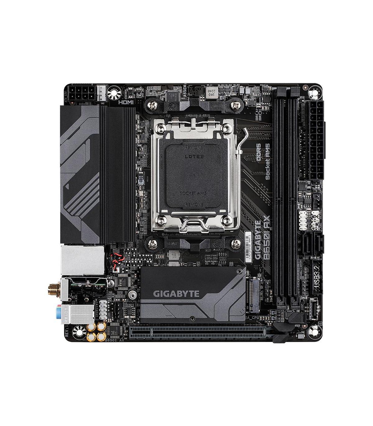 GIGABYTE B650I AX Placa base - AMD Ryzen serie 9000, VRM de 5+2+1 fases, hasta 6400 MHz DDR5 (OC), 1xPCIe 4.0 M.2, LAN 2,5 GbE, WIFI 6E, USB 3.2 Gen 2. Fabricante de procesador: AMD, Socket de procesador: Zócalo AM5, Procesador compatible: AMD Ryzen 7000 Series, AMD Ryzen 8000 Series, AMD Ryzen 9000 Series. tipos de memoria compatibles: DDR5-SDRAM, Memoria interna máxima: 128 GB, Tipo de ranuras de memoria: DIMM. Interfaces de disco de almacenamiento soportados: M.2, SATA III, Tipos de unidades de almacenamiento admitidas: HDD & SSD, Niveles RAID: 0, 1. Máxima resolución: 4096 x 2160 Pixeles. Tipo de interfaz ethernet: 2.5 Gigabit Ethernet, Controlador LAN: Realtek RTL8125, Estándar Wi-Fi: Wi-Fi 6E (802.11ax)