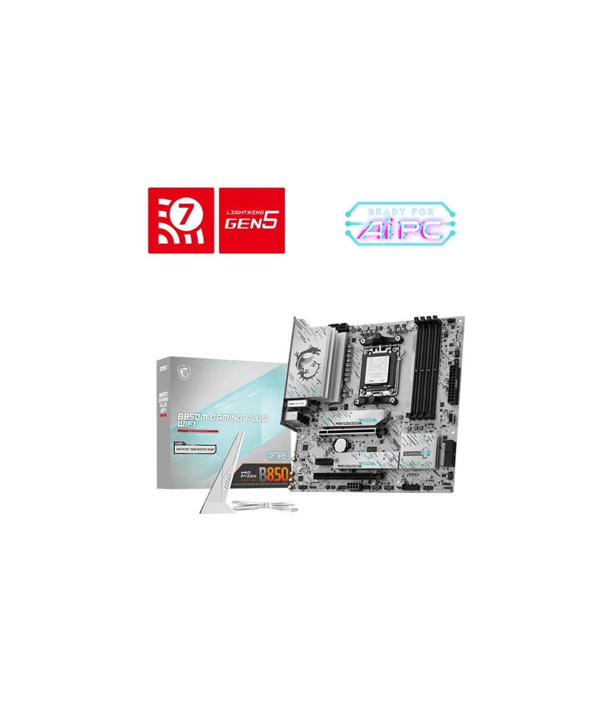 MSI B850M GAMING PLUS WIFI, AMD, Zócalo AM5, AMD Ryzen 7000 Series, AMD Ryzen 8000 Series, AMD Ryzen 9000 Series, Zócalo AM5, DDR5-SDRAM, 256 GB