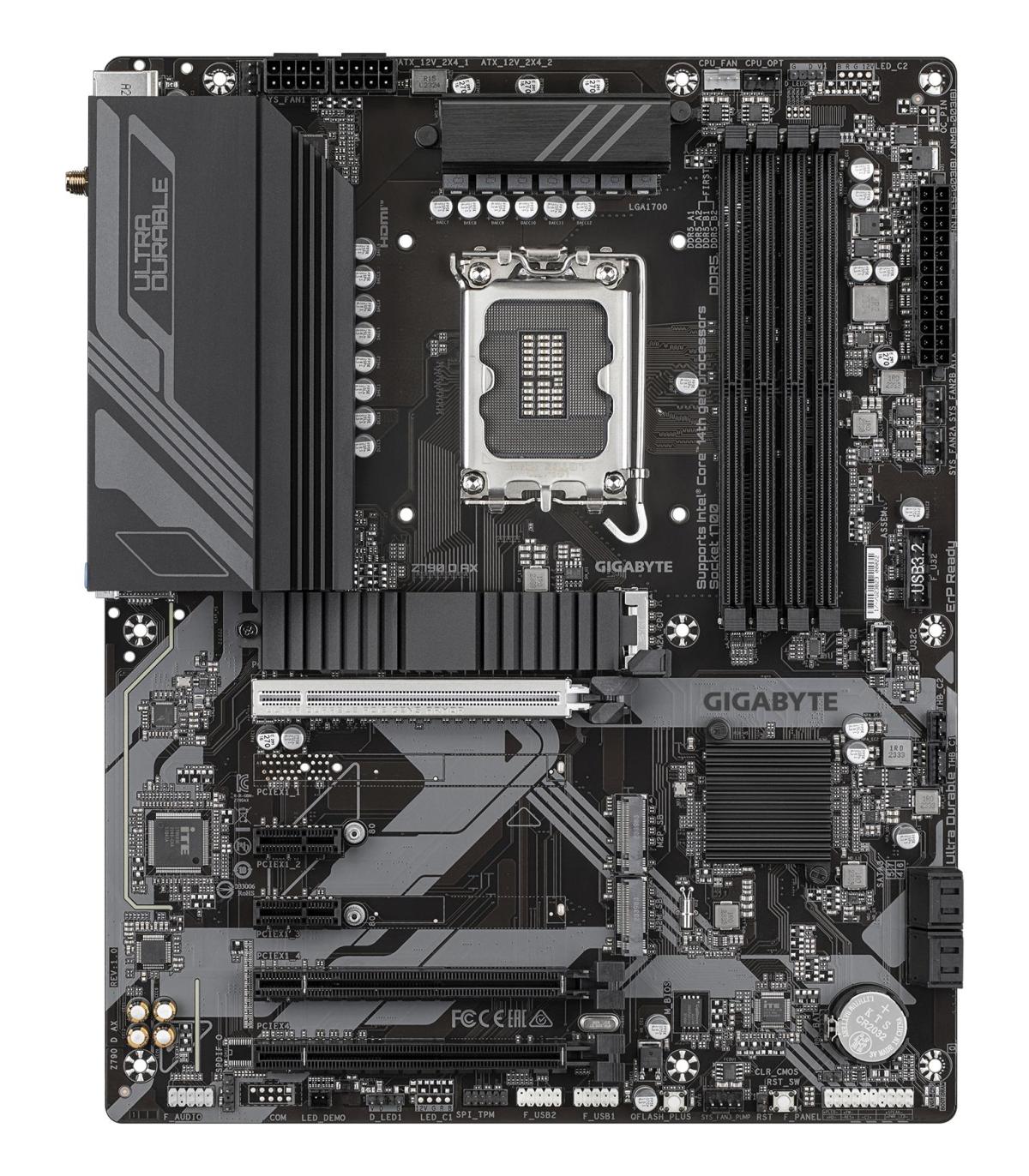 GIGABYTE Z790 D AX Placa base - Soporta CPUs Intel Core de 14ª generación, VRM digital de 12+1+1 fases, hasta 7600MHz DDR5 (OC), 3xPCIe 4.0 M.2, Wi-Fi 6E, LAN de 2.5GbE, USB 3.2 Gen 2. Fabricante de procesador: Intel, Socket de procesador: LGA 1700, Procesador compatible: Intel® Celeron®, Intel® Core™ i3, Intel® Core™ i5, Intel® Core™ i7, Intel® Core™ i9,.... tipos de memoria compatibles: DDR5-SDRAM, Memoria interna máxima: 192 GB, Tipo de ranuras de memoria: DIMM. Interfaces de disco de almacenamiento soportados: M.2, SATA III, Tipos de unidades de almacenamiento admitidas: HDD & SSD, Niveles RAID: 0, 1, 5, 10. Máxima resolución: 4096 x 2304 Pixeles. Conector USB: USB tipo A, USB Tipo C