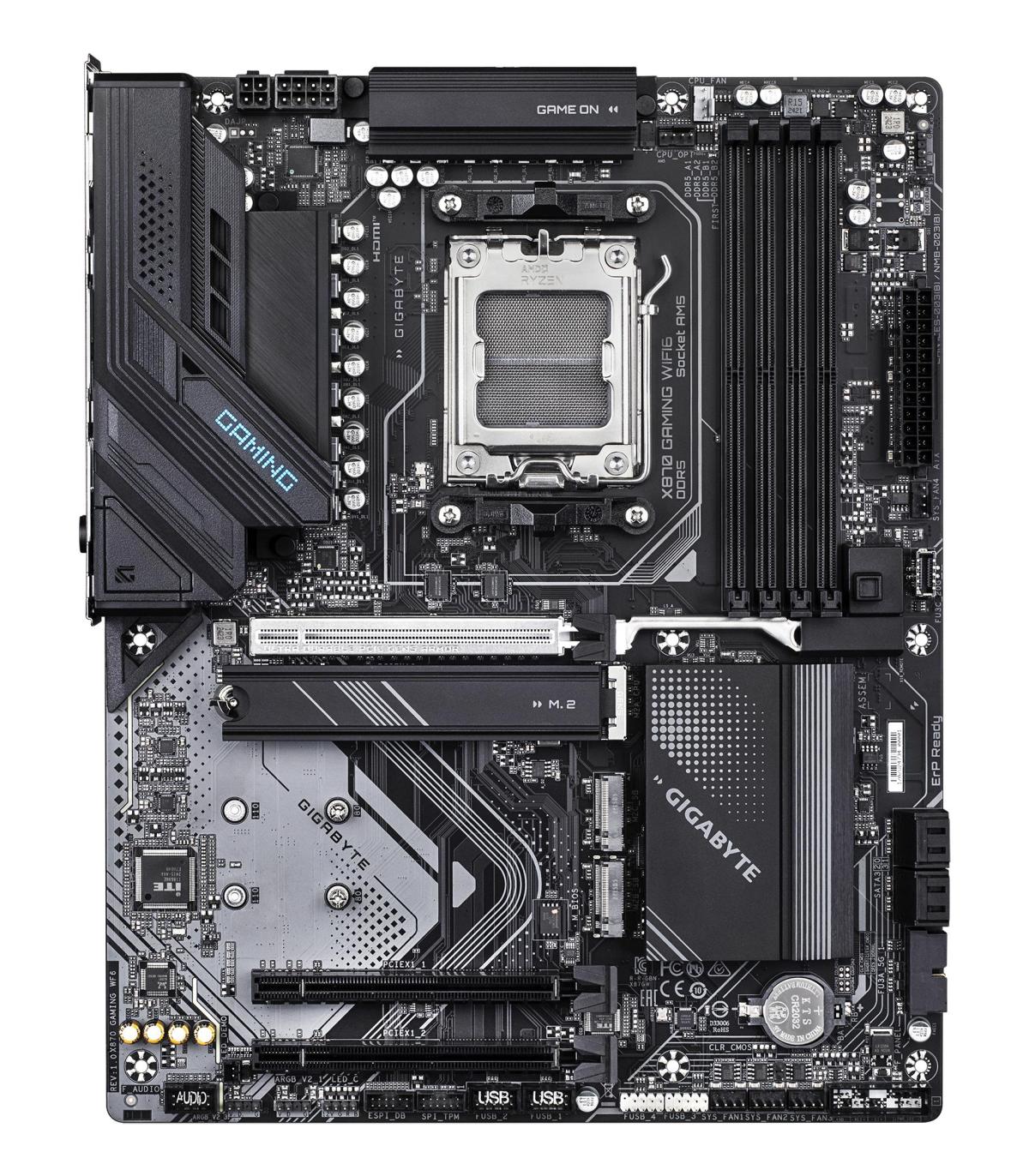 GIGABYTE X870 GAMING WIFI6 Placa Base - Compatible con CPUs AMD Ryzen 9000, 8+2+2 fases VRM, hasta 8000MHz DDR5 (OC), 1xPCIe 5.0 + 2xPCIe 4.0, Wi-Fi 6, LAN 2.5GbE, USB 4. Fabricante de procesador: AMD, Socket de procesador: Zócalo AM5, Procesador compatible: AMD Ryzen™ 7. tipos de memoria compatibles: DDR5-SDRAM, Memoria interna máxima: 256 GB, Tipo de ranuras de memoria: DIMM. Interfaces de disco de almacenamiento soportados: M.2, SATA III, Tipos de unidades de almacenamiento admitidas: HDD & SSD, Niveles RAID: 0, 1, 10. Tipo de interfaz ethernet: 2.5 Gigabit Ethernet, Estándar Wi-Fi: Wi-Fi 6 (802.11ax), Wi-Fi estándares: 802.11b, 802.11g, Wi-Fi 4 (802.11n), Wi-Fi 5 (802.11ac), Wi-Fi 6 (802.11ax), Wi-Fi 7 (802.11be). Componente para: PC, Factor de forma: ATX, Familia del chipset: AMD