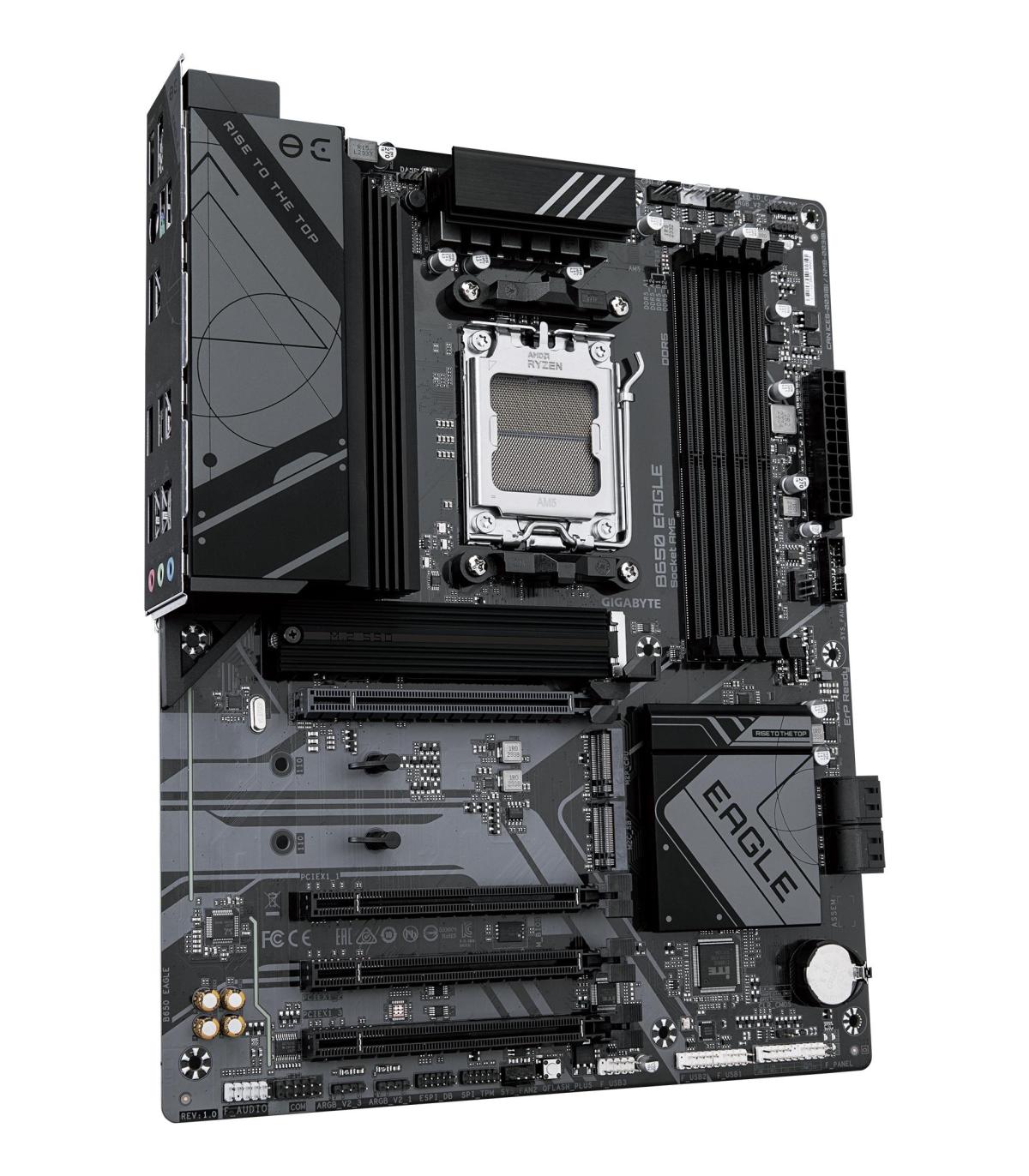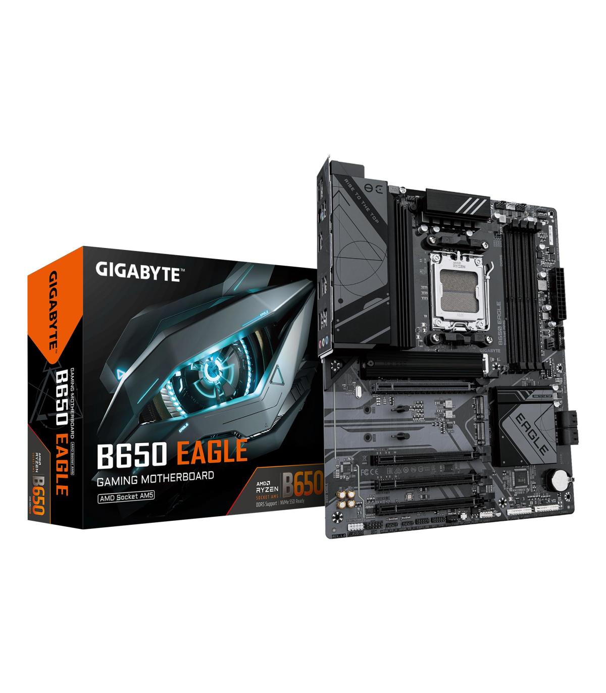 GIGABYTE B650 EAGLE Placa base - AMD Ryzen serie 9000, VRM de 12+2+2 fases, hasta 7600 MHz DDR5 (OC), 1xPCIe 5.0 + 2xPCIe 4.0 M.2, LAN GbE, USB 3.2 Gen 2. Fabricante de procesador: AMD, Socket de procesador: Zócalo AM5, Procesador compatible: AMD Ryzen 7000 Series, AMD Ryzen 8000 Series, AMD Ryzen 9000 Series. tipos de memoria compatibles: DDR5-SDRAM, Memoria interna máxima: 256 GB, Tipo de ranuras de memoria: DIMM. Interfaces de disco de almacenamiento soportados: M.2, SATA III, Tipos de unidades de almacenamiento admitidas: HDD & SSD, Niveles RAID: 0, 1, 10. Máxima resolución: 4096 x 2160 Pixeles. Tipo de interfaz ethernet: Gigabit Ethernet, Controlador LAN: Realtek RTL8111H