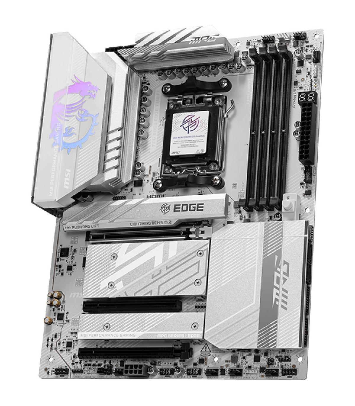 MSI MPG B850 EDGE TI WIFI. Fabricante de procesador: AMD, Socket de procesador: Zócalo AM5, Procesador compatible: AMD Ryzen 7000 Series, AMD Ryzen 8000 Series, AMD Ryzen 9000 Series. tipos de memoria compatibles: DDR5-SDRAM, Memoria interna máxima: 256 GB, Tipo de ranuras de memoria: DIMM. Interfaces de disco de almacenamiento soportados: M.2, Micro SATA III, Tipos de unidades de almacenamiento admitidas: HDD & SSD, Niveles RAID: 0, 1, 10. Tipo de interfaz ethernet: 2.5 Gigabit Ethernet, Estándar Wi-Fi: Wi-Fi 7 (802.11be), Wi-Fi estándares: 802.11a, 802.11b, 802.11g, Wi-Fi 4 (802.11n), Wi-Fi 5 (802.11ac), Wi-Fi 6 (802.11ax), Wi-Fi 6E.... Componente para: PC, Factor de forma: ATX, Familia del chipset: AMD